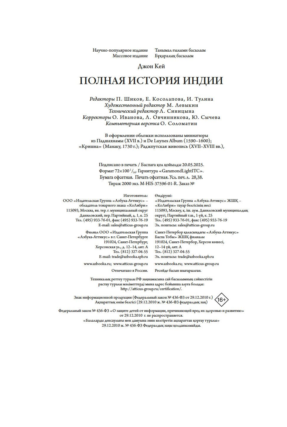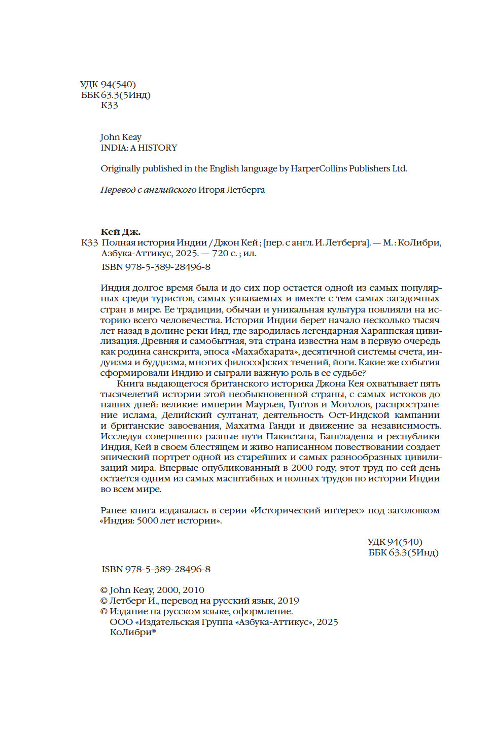 Ранее книга издавалась в серии "Исторический интерес" под заголовком "Индия: 5000 лет истории".