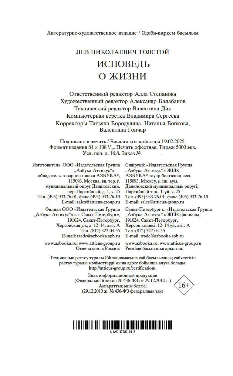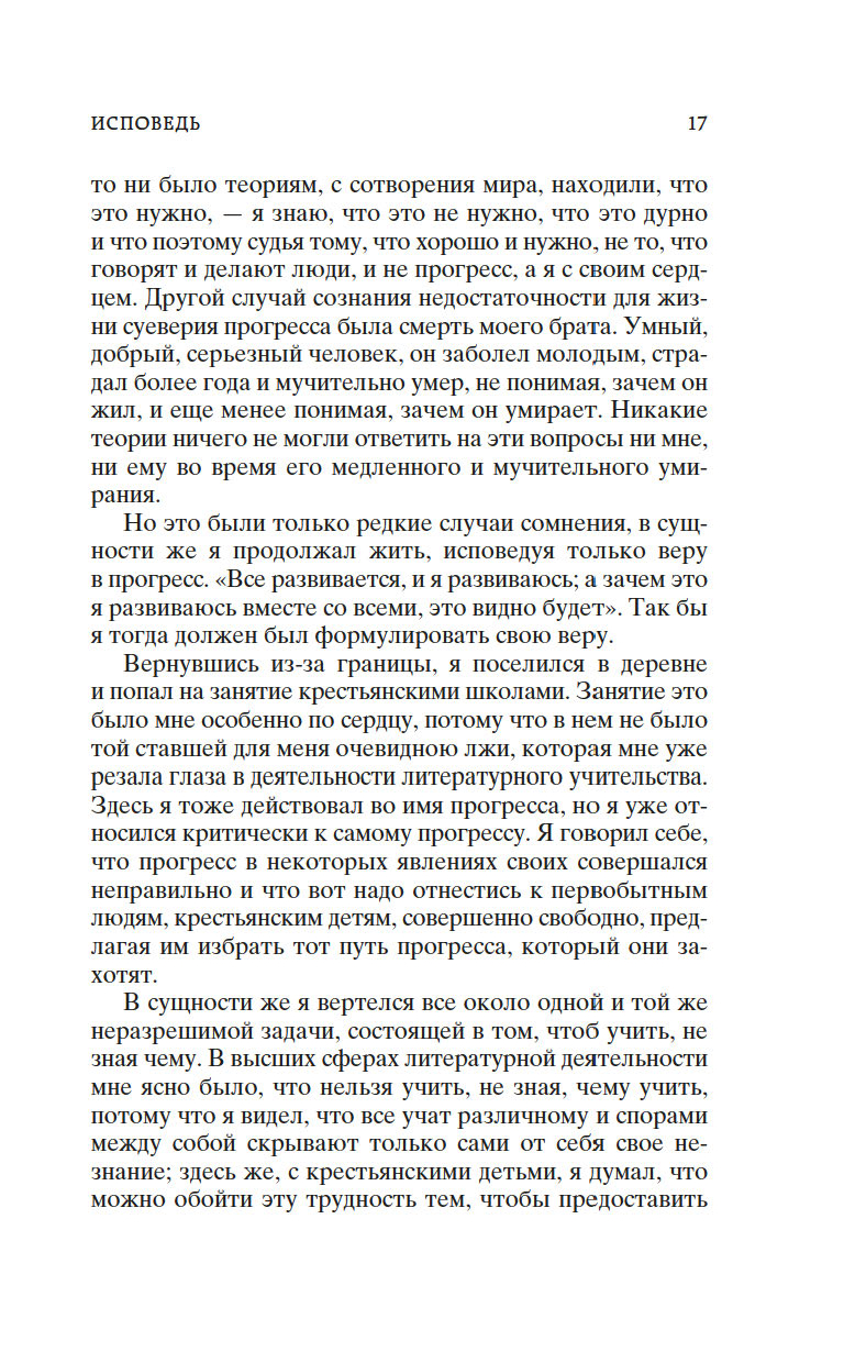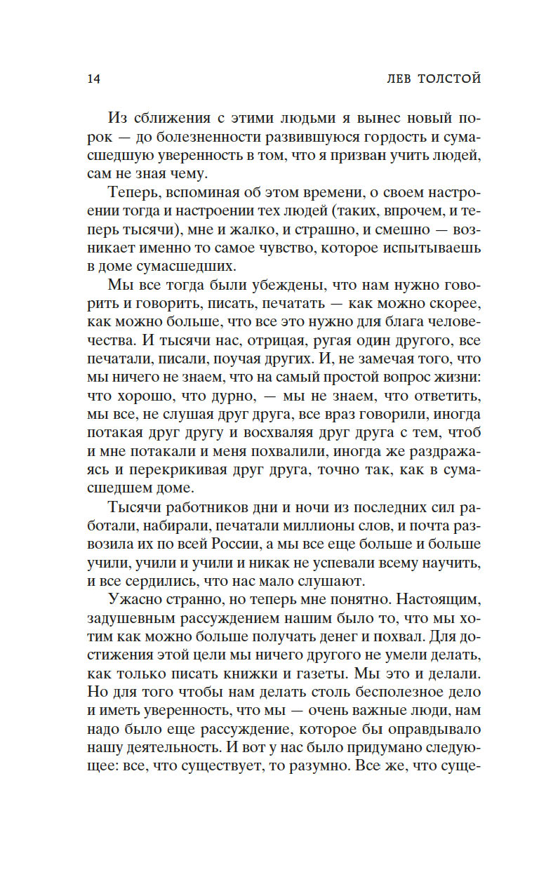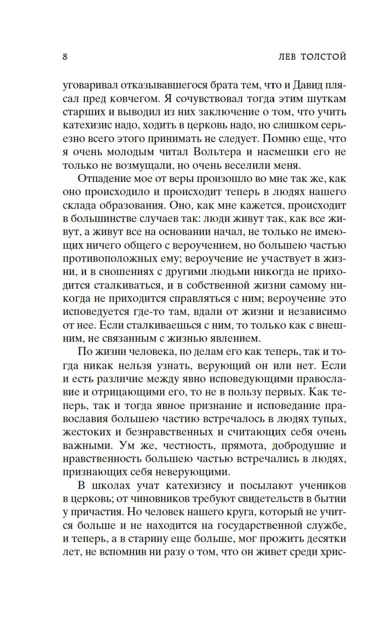 Лев Николаевич Толстой, возможно, самый известный в мире русский писатель, вошел в историю литературы не только как творец бессмертных романов, повестей, рассказов, но и как философ, создатель собственного учения – толстовства. В настоящее издание вошли два важнейших религиозно-философских труда Л. Н. Толстого – "Исповедь" и "О жизни". Став итогом многолетних размышлений писателя о фундаментальных вопросах человеческого бытия – о смысле жизни, о смерти и бессмертии, о вере, о том, что есть Бог, – в свое время эти произведения были запрещены к публикации цензурой. И если "Исповедь" разошлась по всей России в рукописных копиях, то сочинение "О жизни" широкому читателю не было известно.