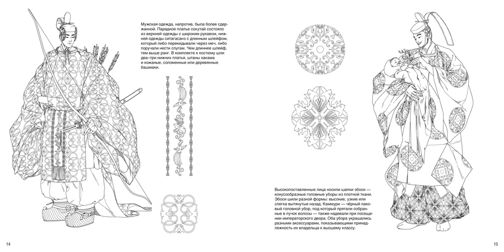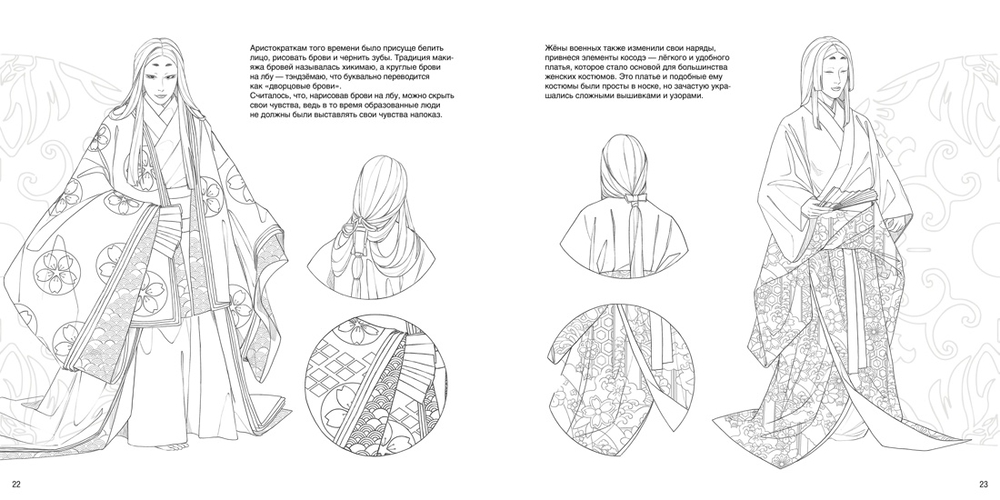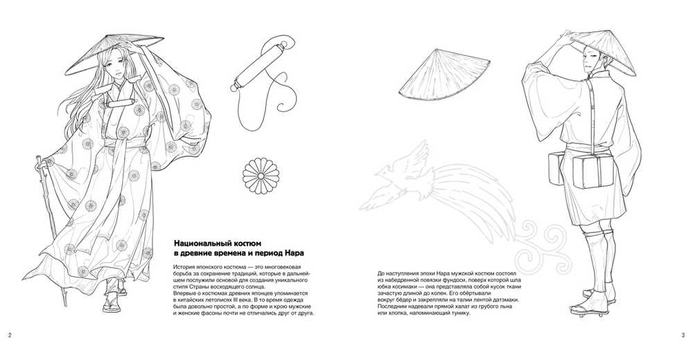 Иллюстрации сопровождаются краткой исторической справкой о том, как на протяжении эпох менялась одежда жителей Страны восходящего солнца.