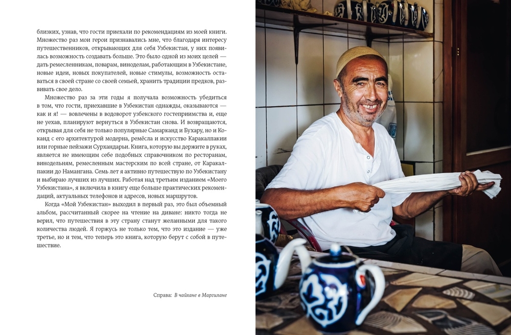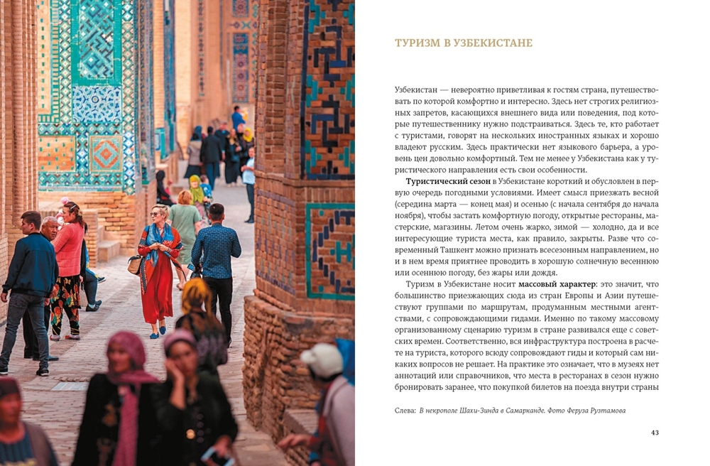 Книга, впервые вышедшая в 2021 году и ставшая российским бестселлером, предоставляет самую актуальную, обновленную в декабре 2024 года информацию об отелях, в которых можно остановиться, ресторанах и чайханах, которые стоит посетить, о еде и вине, которые непременно надо попробовать.