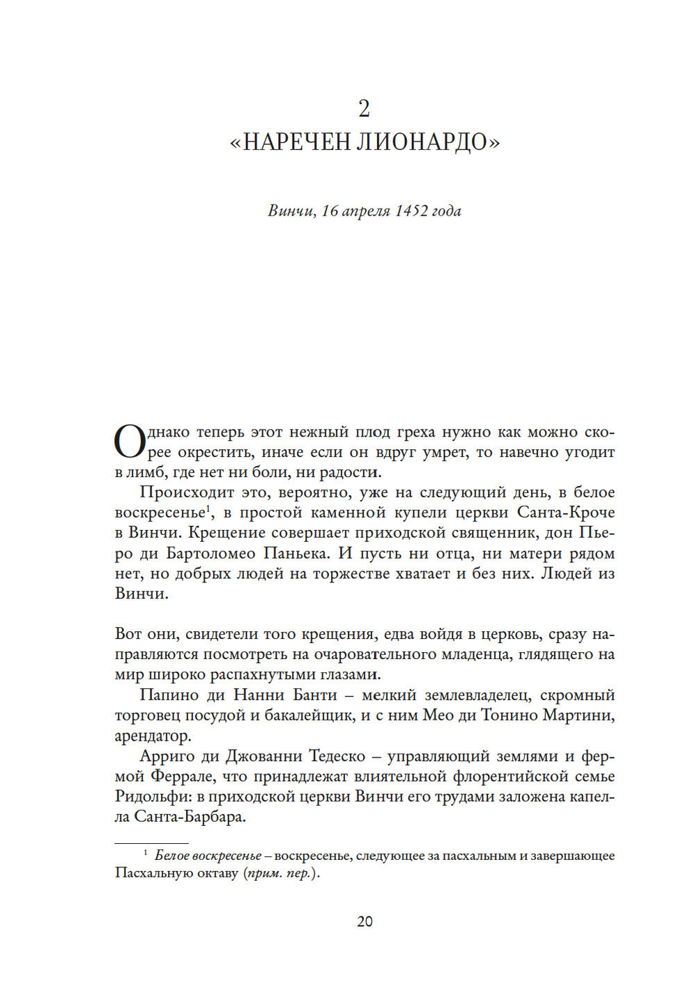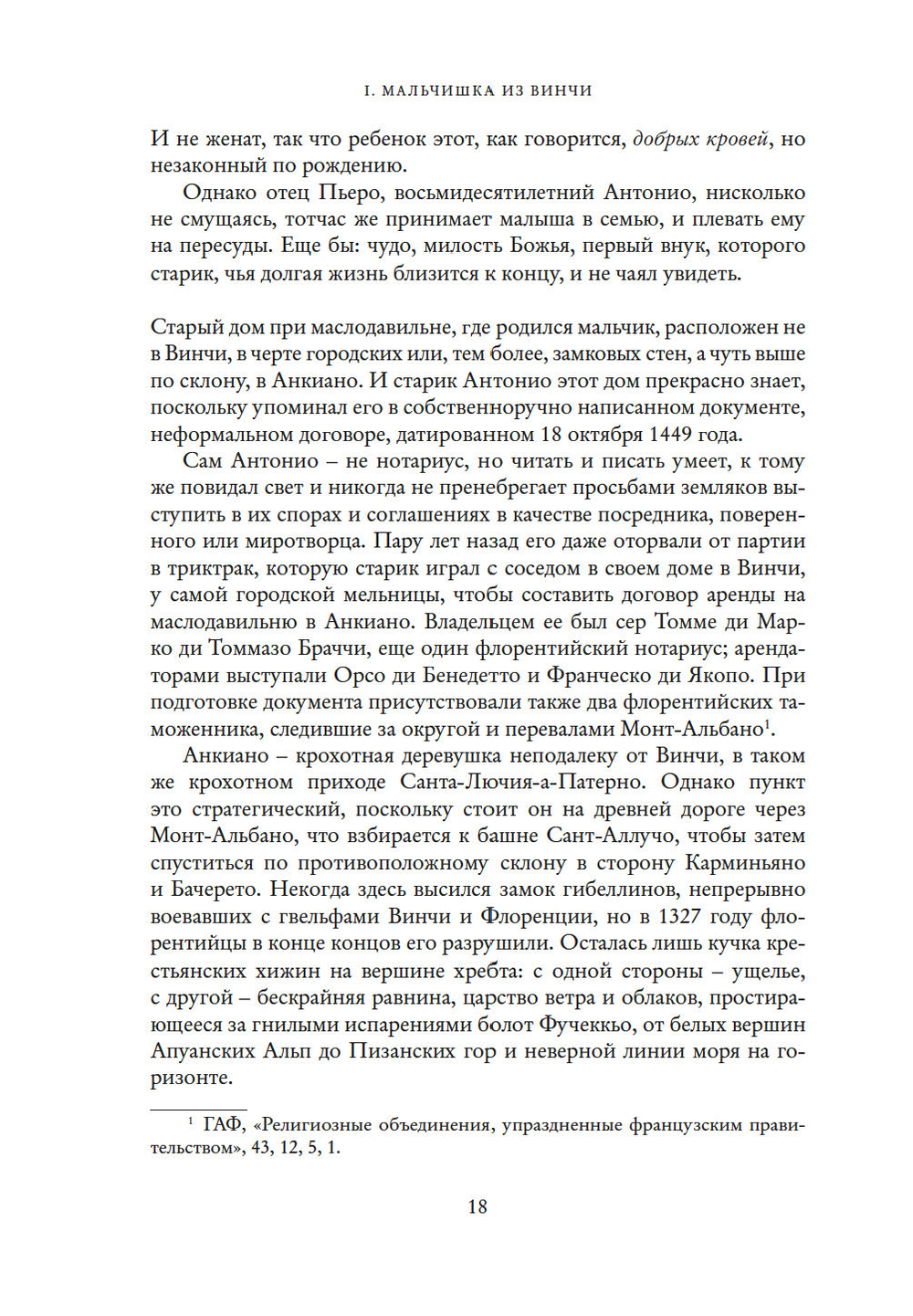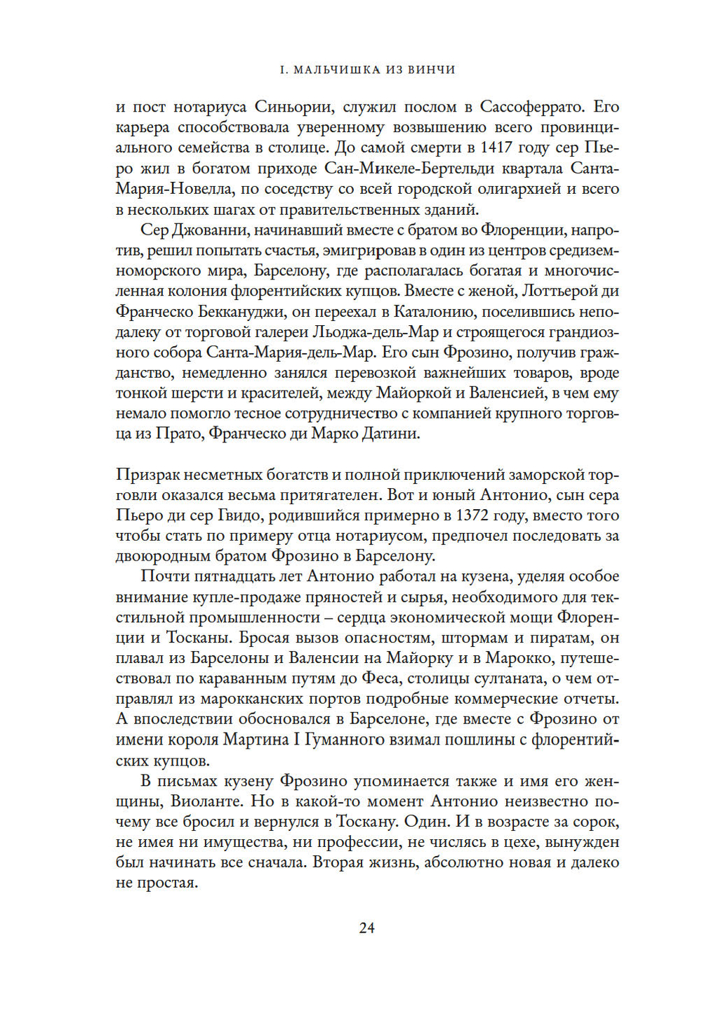 Это история простого деревенского мальчишки. Внебрачного сына нотариуса и рабыни, сильной, юной женщины, чужестранки из дальних краев. Леонардо, имя, означающее свободу, вероятно, дала сыну именно она.