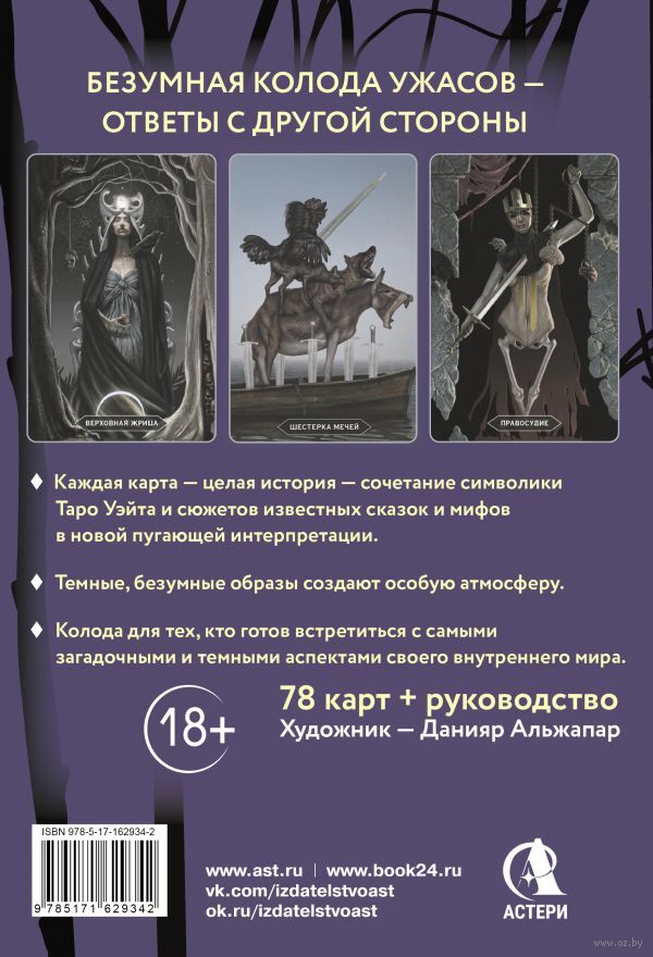"Безумие сумрачного леса" – Таро с пугающими иллюстрациями на основе мифических и сказочных сюжетов по теме ужасов. Глубокая колода, в которой каждая карта – это целая история, темная сказка, ведущая человека к глубинным ответам.