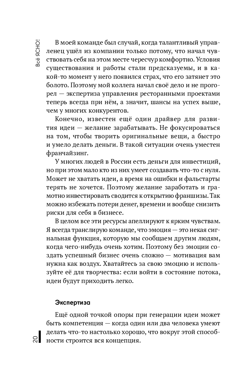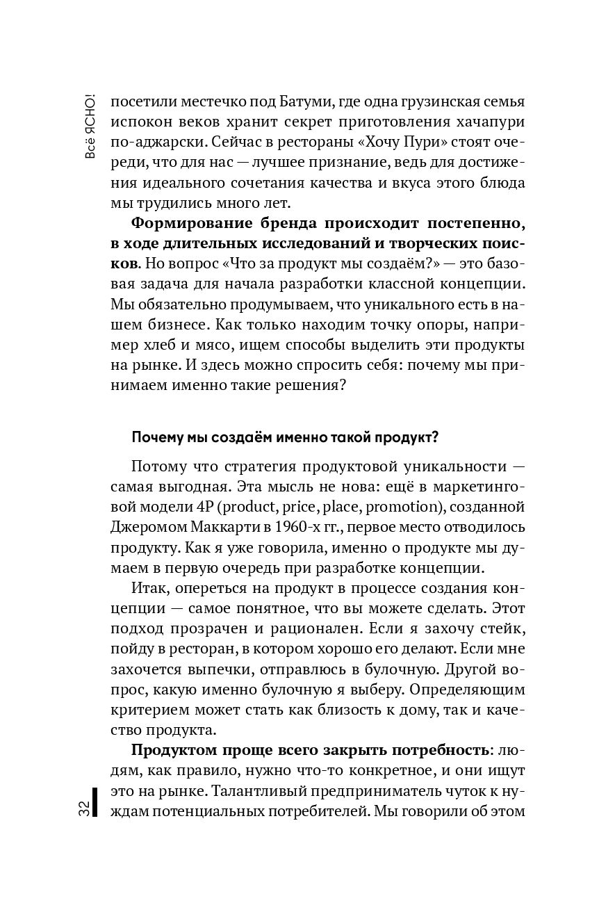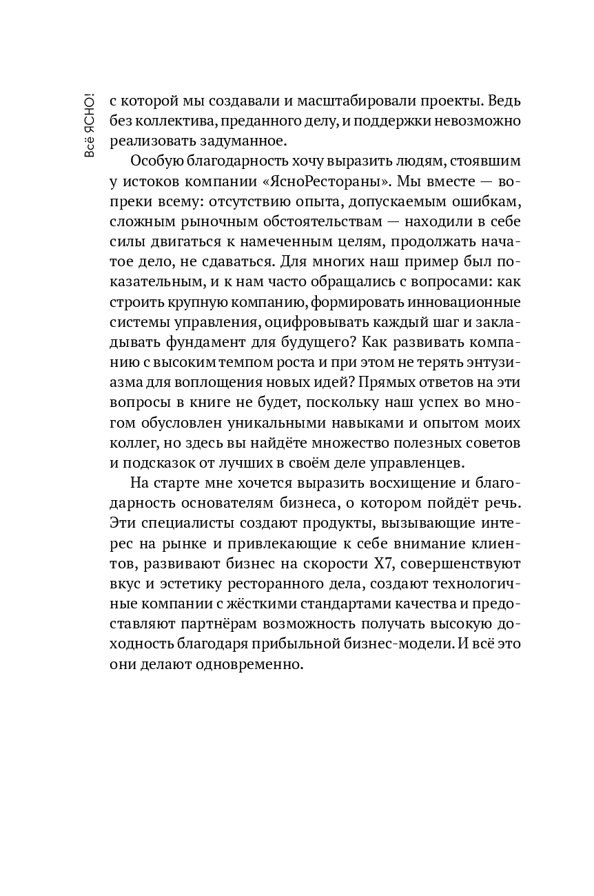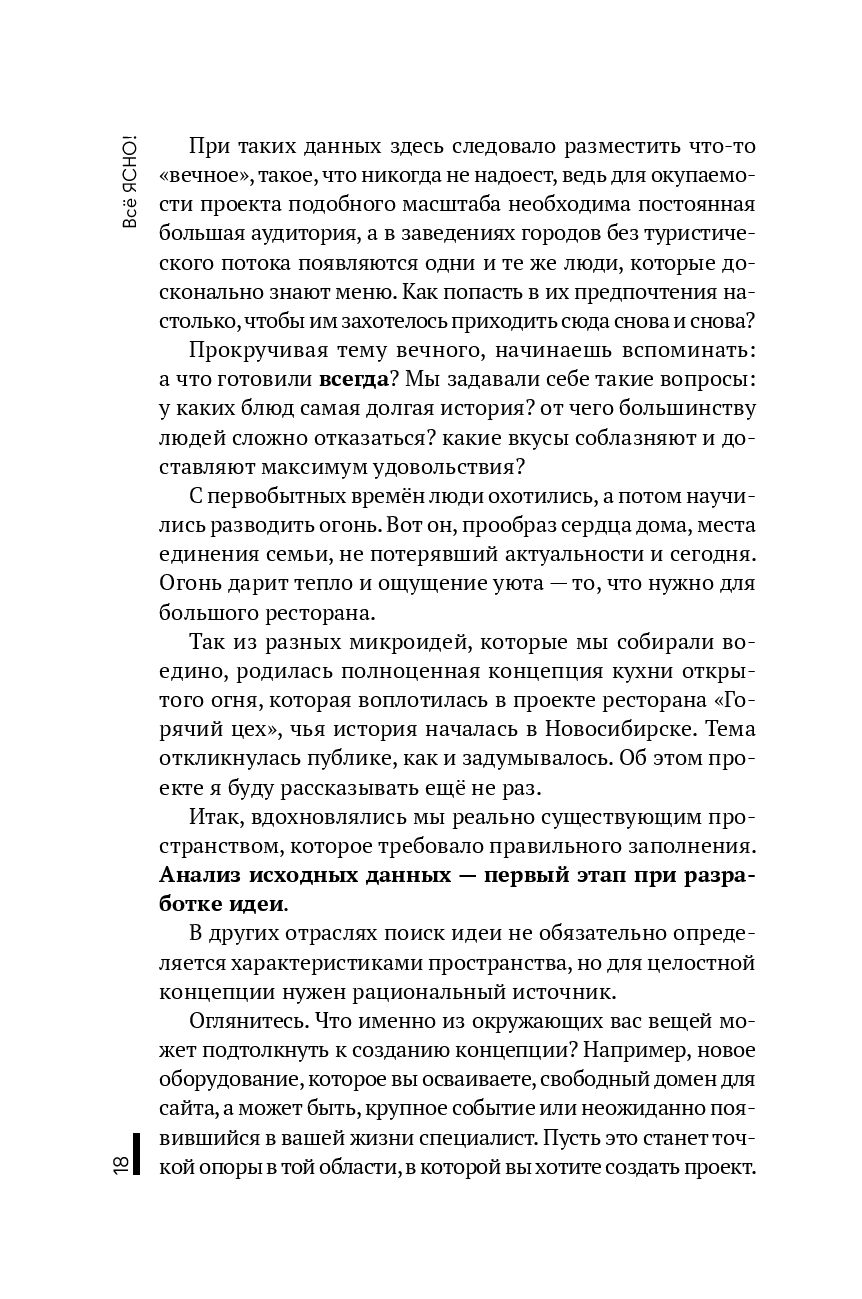 "Всё ЯСНО!" – понятное и конкретное руководство по созданию концептуальных проектов. Оно основано на богатом опыте Ирины Измайловой в ресторанном бизнесе: автор честно, не скрывая ошибок, делится своим путем от рядового маркетолога до руководителя трансформационного офиса крупной компании.