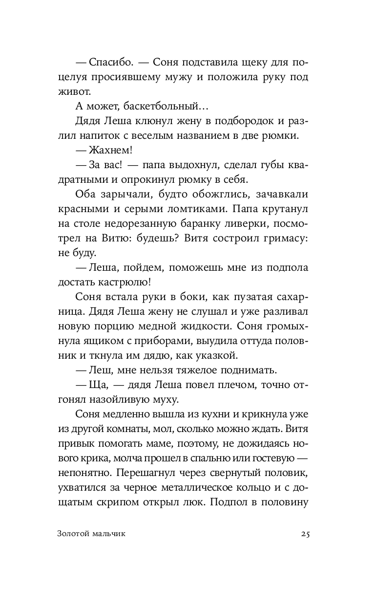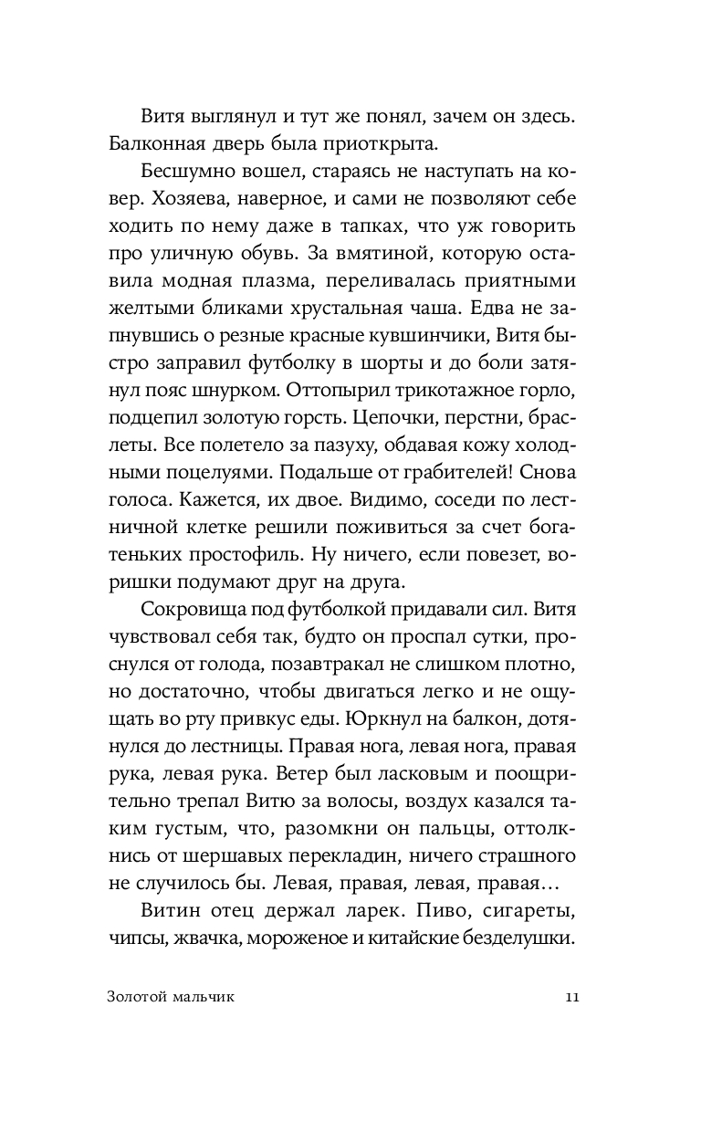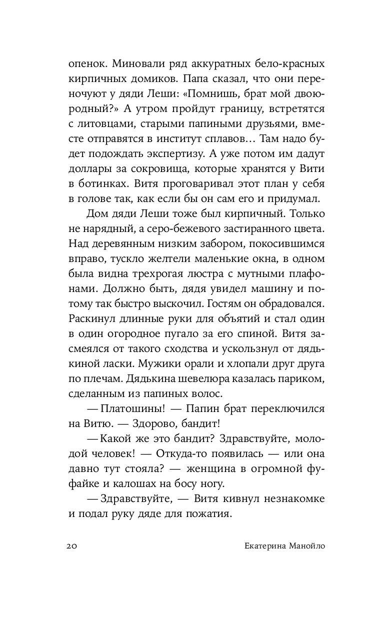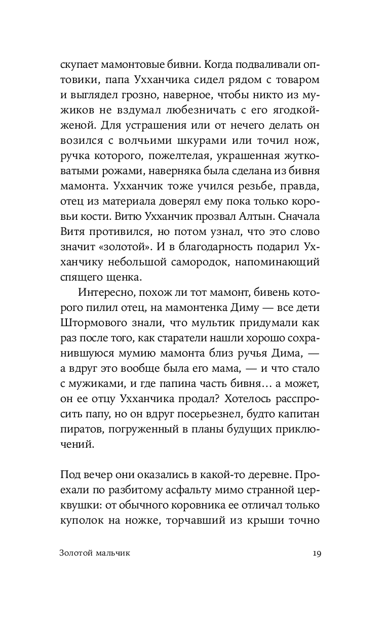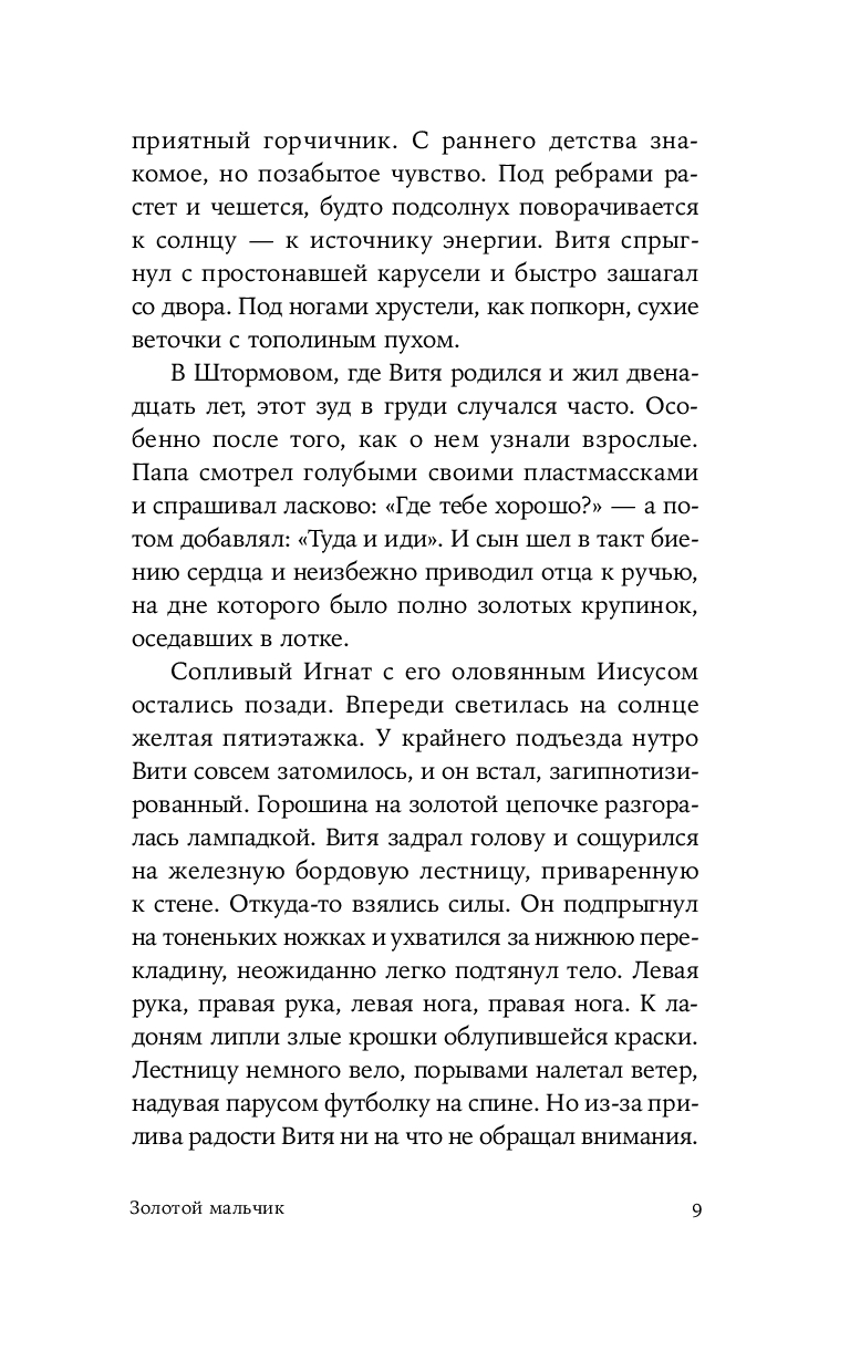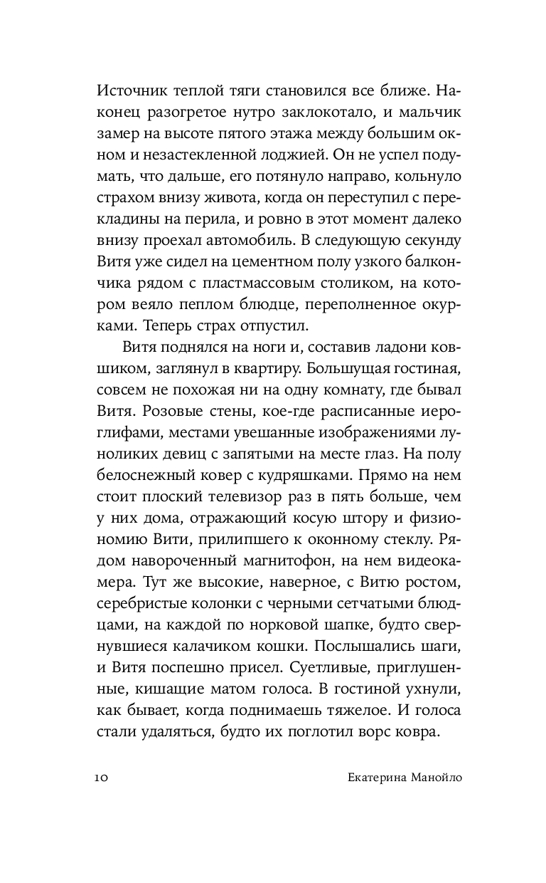 Герой нового романа Екатерины Манойло – мальчик Витя, обладающий необычным даром: он способен чувствовать золото под землей и в воде, отзываясь на его тепло трепетным эхом. Витя родился в посёлке Штормовом под Магаданом, среди золотоносных жил, где местные зарабатывают контрабандой драгоценного металла. Уникальное умение мальчика не может остаться в секрете – им начинают интересоваться злые люди, демоны этих мест. Чтобы спасти ребёнка, его родители решаются на опасное путешествие в поисках другой судьбы. Теперь, за многие тысячи километров от прииска, золото, бывшее в прошлой жизни постоянным спутником и источником силы Вити, становится магическим проводником в необъятном и чуждом мире.