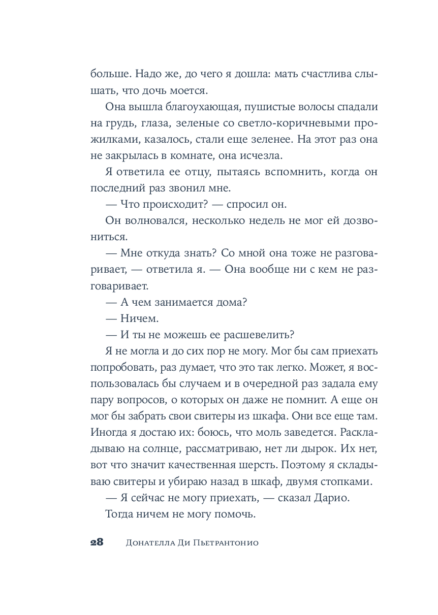 В 2024 году роман Донателлы Ди Пьетрантонио стал лауреатом главной итальянской литературной премии Strega. Эта история – о хрупкости человеческой души, прощении, исцелении и надежде. И о том, что счастливое будущее возможно, даже если шрамы от тяжелых событий, пережитых в юности, – наше единственное наследство.