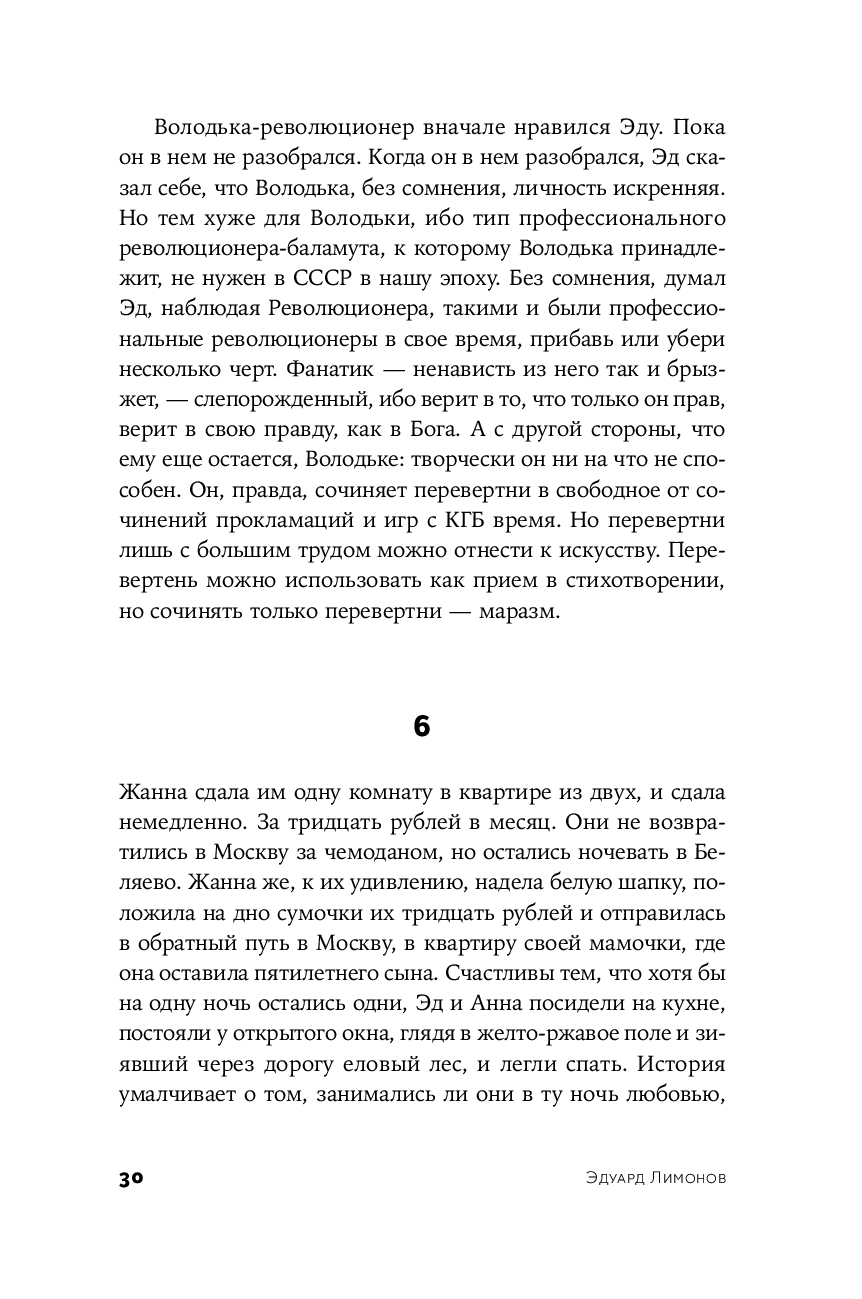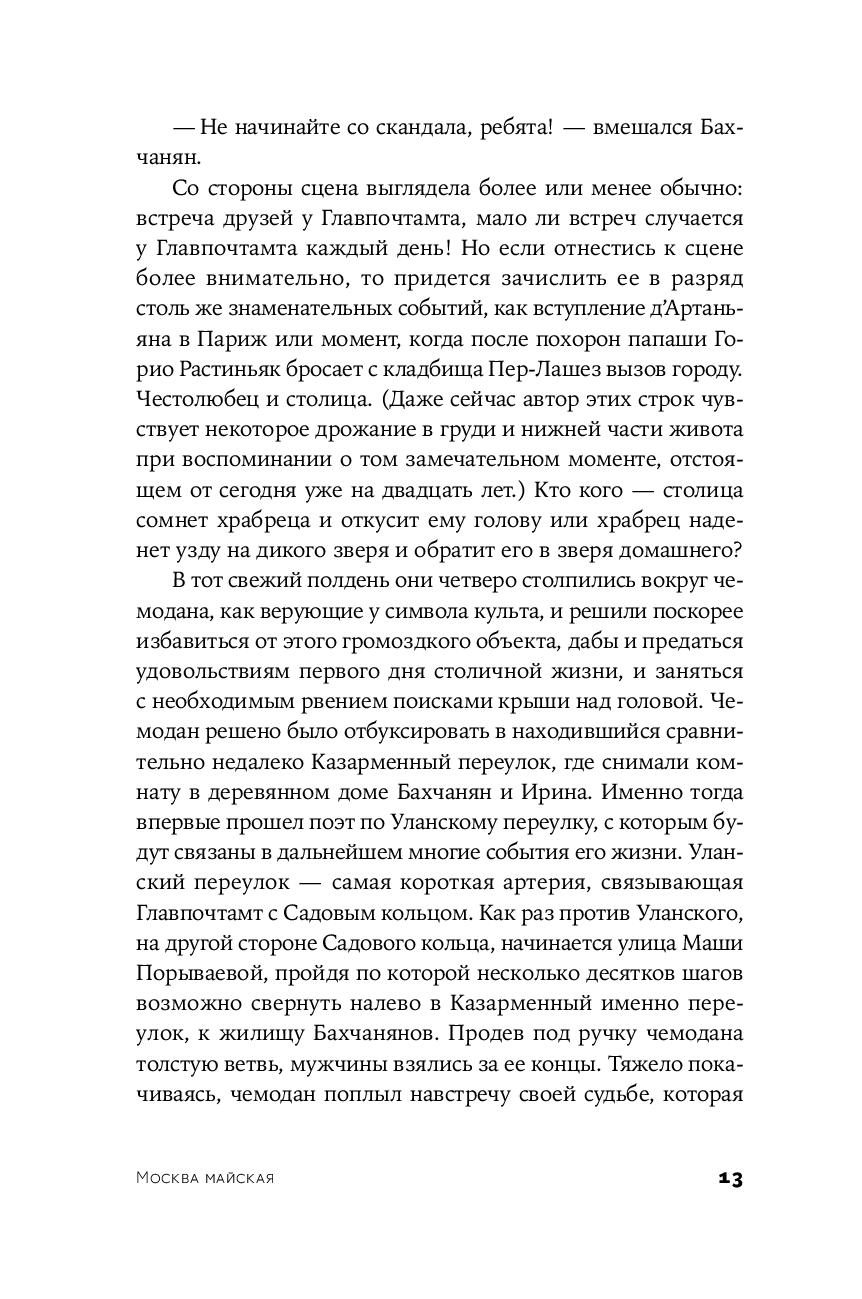 Написанный после знаменитой нью-йоркской трилогии, роман "Москва майская" предшествует ей сюжетно: Лимонов пишет текст уже в середине 1980-х в Париже, оставив позади и московский, и американский период, – и эта оптика позволяет читателю увидеть повествователя сразу в двух измерениях.