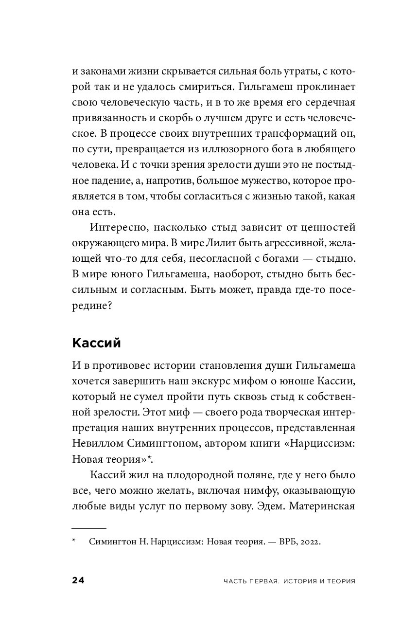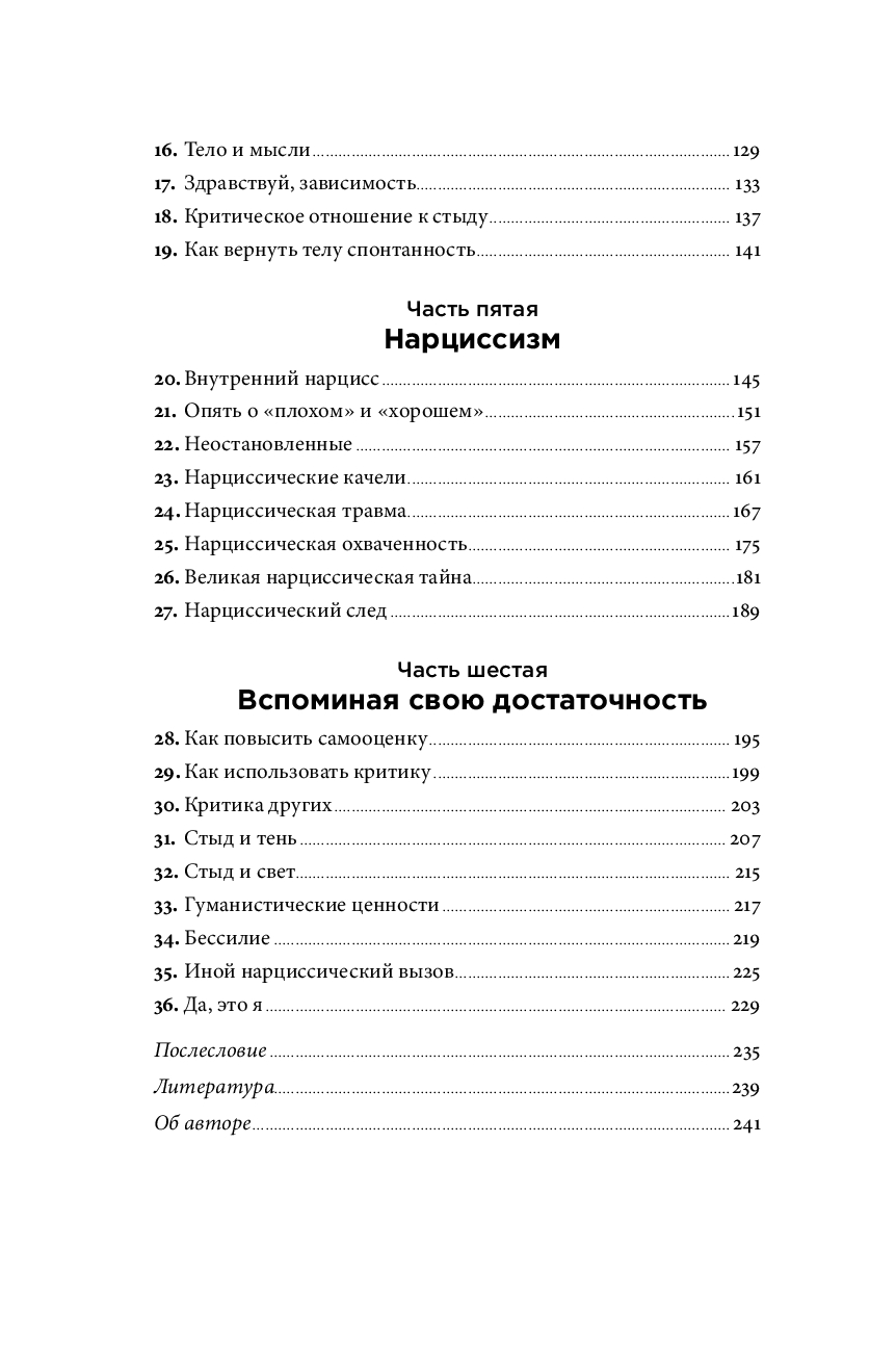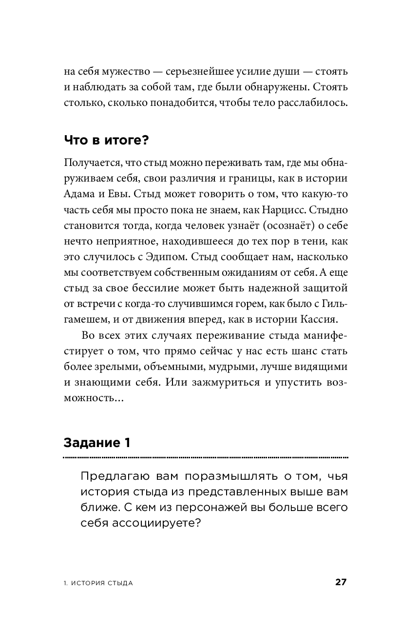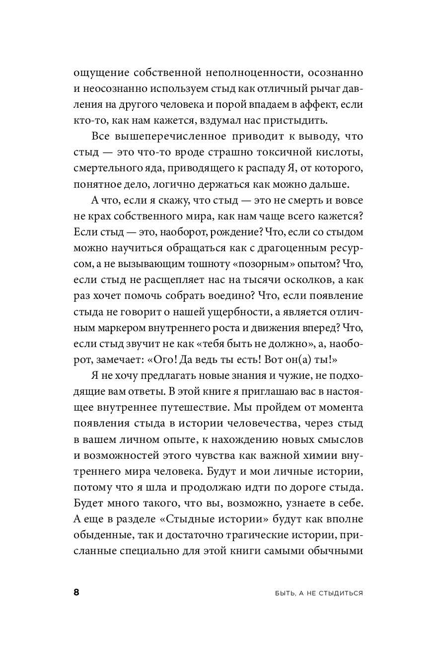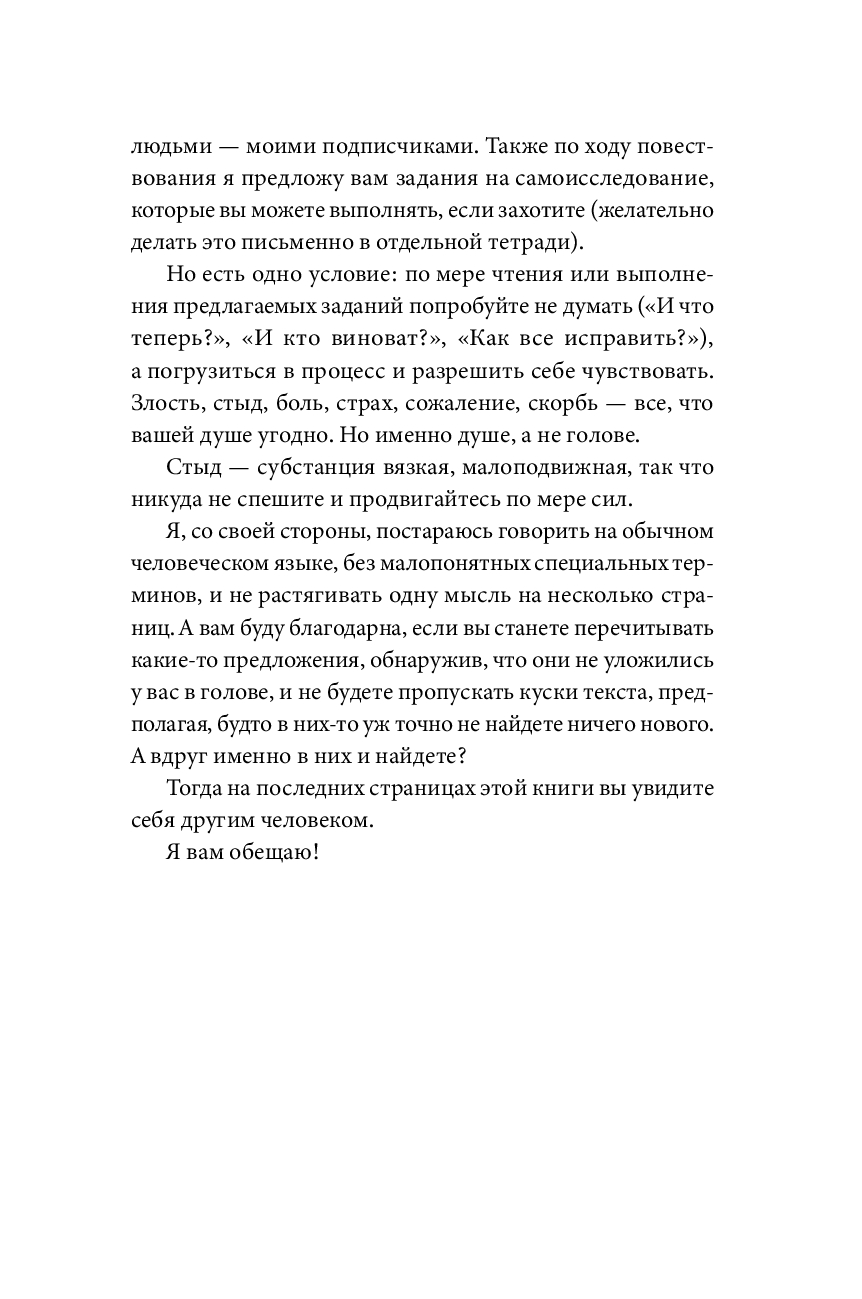 При поиске самоидентичности и внутренней опоры именно стыд является точным маркером тех частей "Я", которые остро нуждаются в принятии. Ощущение собственной ущербности и неполноценности часто проистекает из негативного опыта детства. Люди, выросшие в критическом окружении, зачастую чувствуют себя недостойными любви или стыдятся своих "недостатков", и это мешает наладить отношения, обрести счастье и добиться успеха в жизни. Но, как отмечает автор, болезненный опыт не должен определять будущее. И благодаря этой книге вы научитесь видеть и принимать себя с добротой и состраданием, во всей своей удивительной сложности.