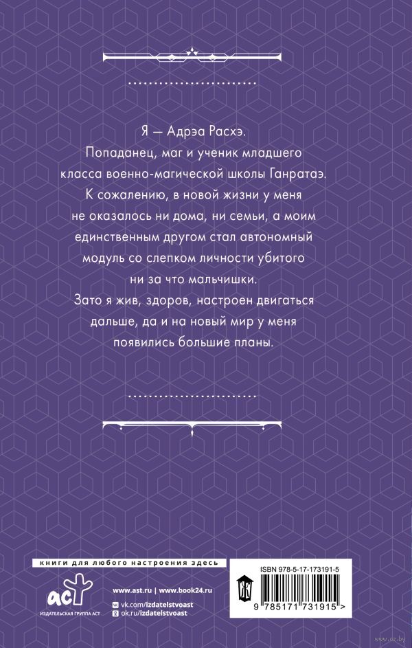 Я – Адрэа Расхэ. Попаданец, маг и ученик младшего класса военно-магической школы Ганратаэ. К сожалению, в новой жизни у меня не оказалось ни дома, ни семьи, а моим единственным другом стал автономный модуль со слепком личности убитого ни за что мальчишки. Зато я жив, здоров, настроен двигаться дальше, да и на новый мир у меня появились большие планы.