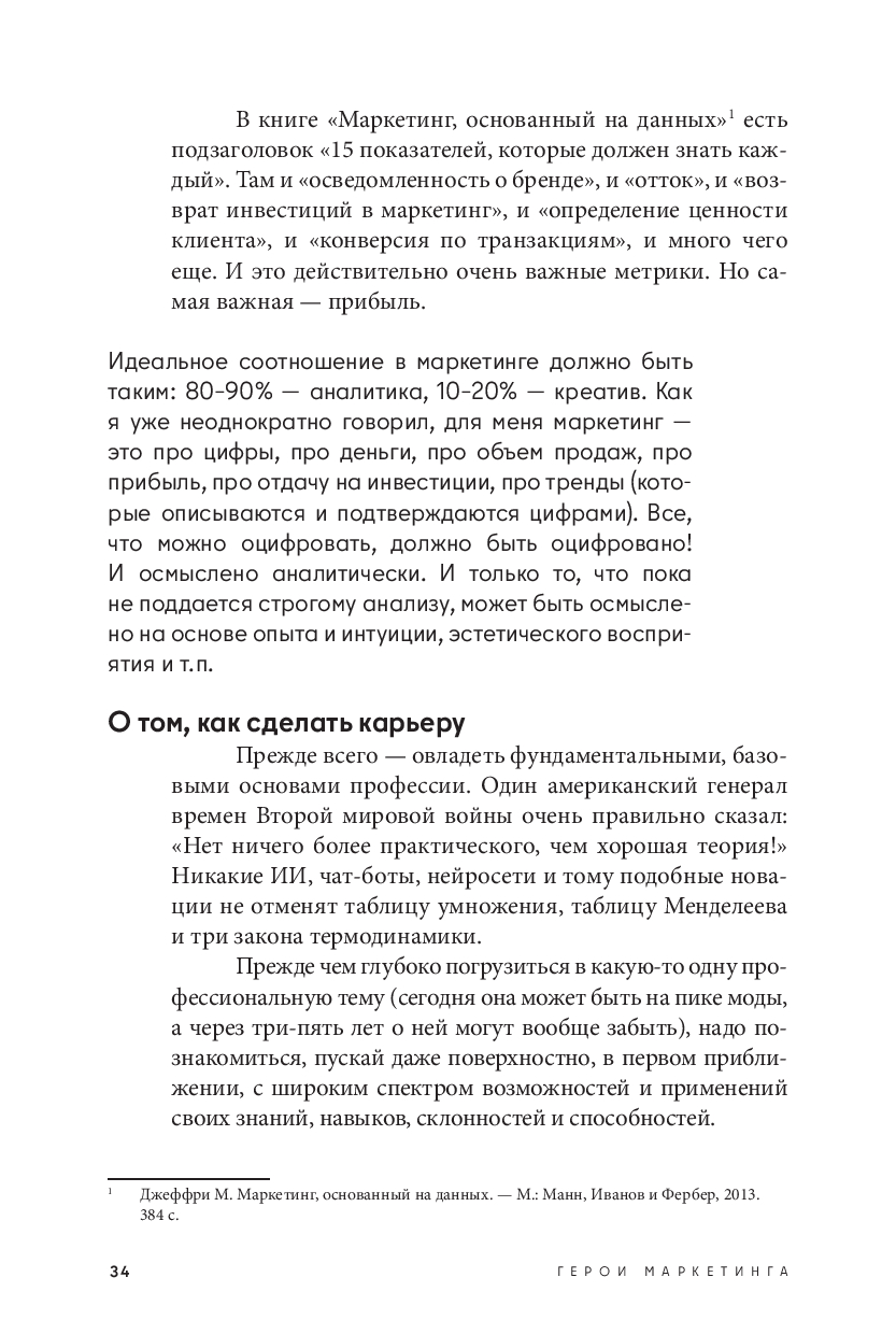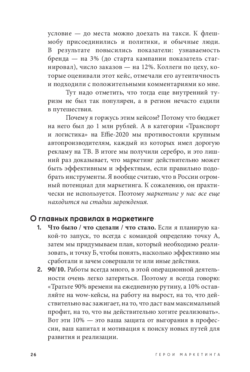 В книге "Альпина ПРО бизнес. Маркетинг" собраны реальные истории тех, кто сделал свои компании узнаваемыми, кто смог достучаться до клиентов и создать культовые бренды, завоевывать аудиторию и сделать так, чтобы о них говорили. Если вы занимаетесь бизнесом, работаете в маркетинге или просто хотите понять, как управлять вниманием людей, – эта книга поможет вам стать мастером и продвигать что угодно. Вы узнаете, как создавать запоминающиеся рекламные кампании, разберетесь, почему одни бренды остаются в памяти, а другие исчезают, поймете, какие ошибки убивают маркетинг и как их избежать.