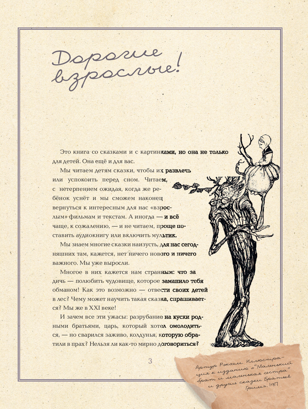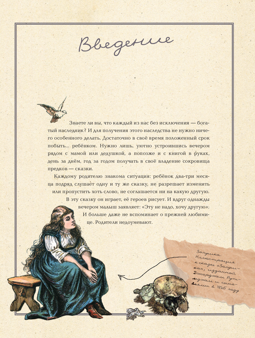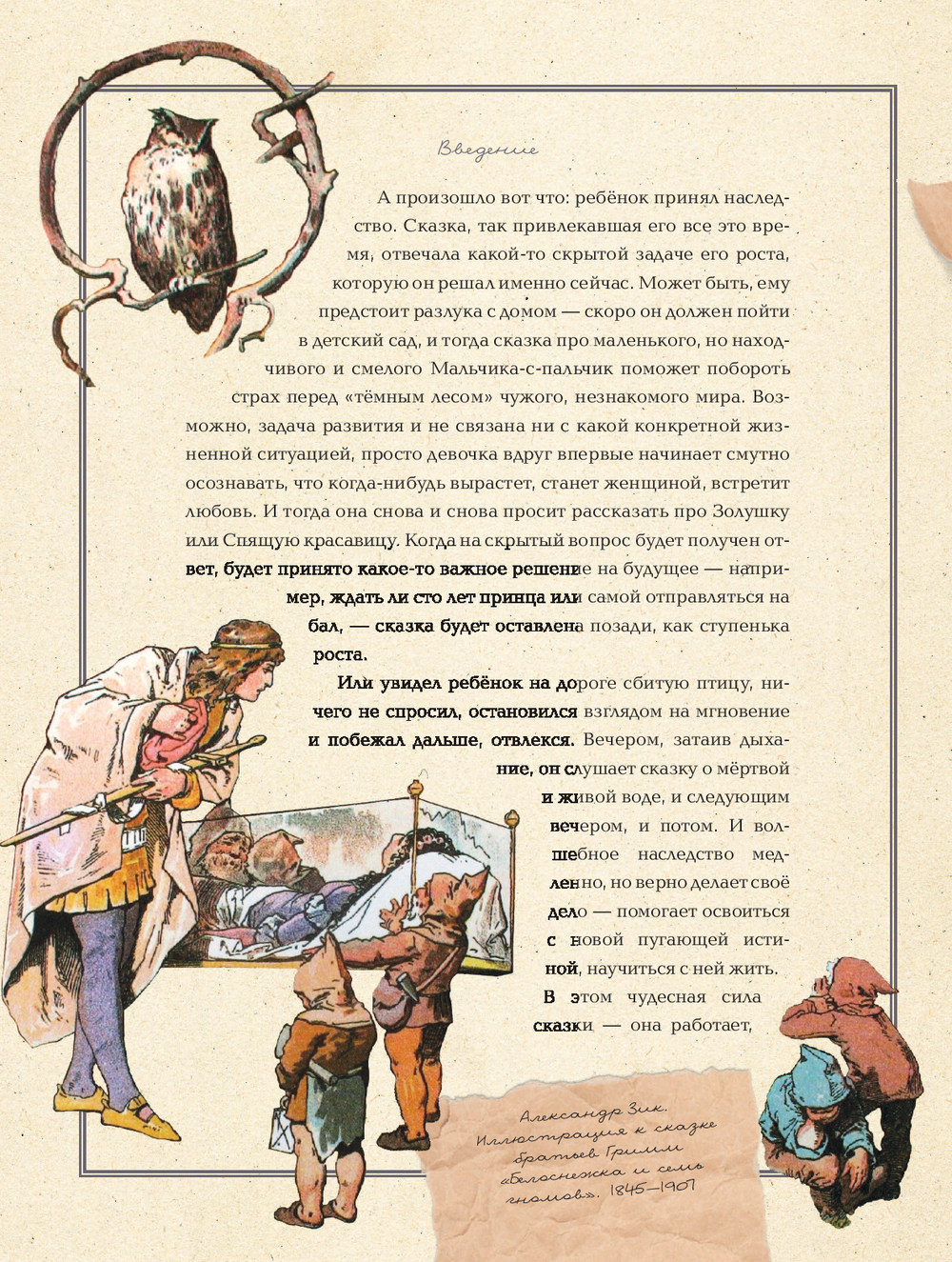 Страница за страницей вы будете заново знакомиться со сказочными героями и их приключениями, открывая для себя неожиданные богатства, спрятанные в "Сказке об Иване-царевиче, Жар-птице и Сером Волке" с иллюстрациями И. Билибина, в сказке Шарля Перро "Кот в сапогах" с иллюстрациями Г. Доре, в средневековом сказании "Тристан и Изольда" с графикой У. Крейна, в сказке братьев Гримм "Замарашка" с иллюстрациями А. Рэкхема и ещё 11 зачитанных до дыр любимых сказках.