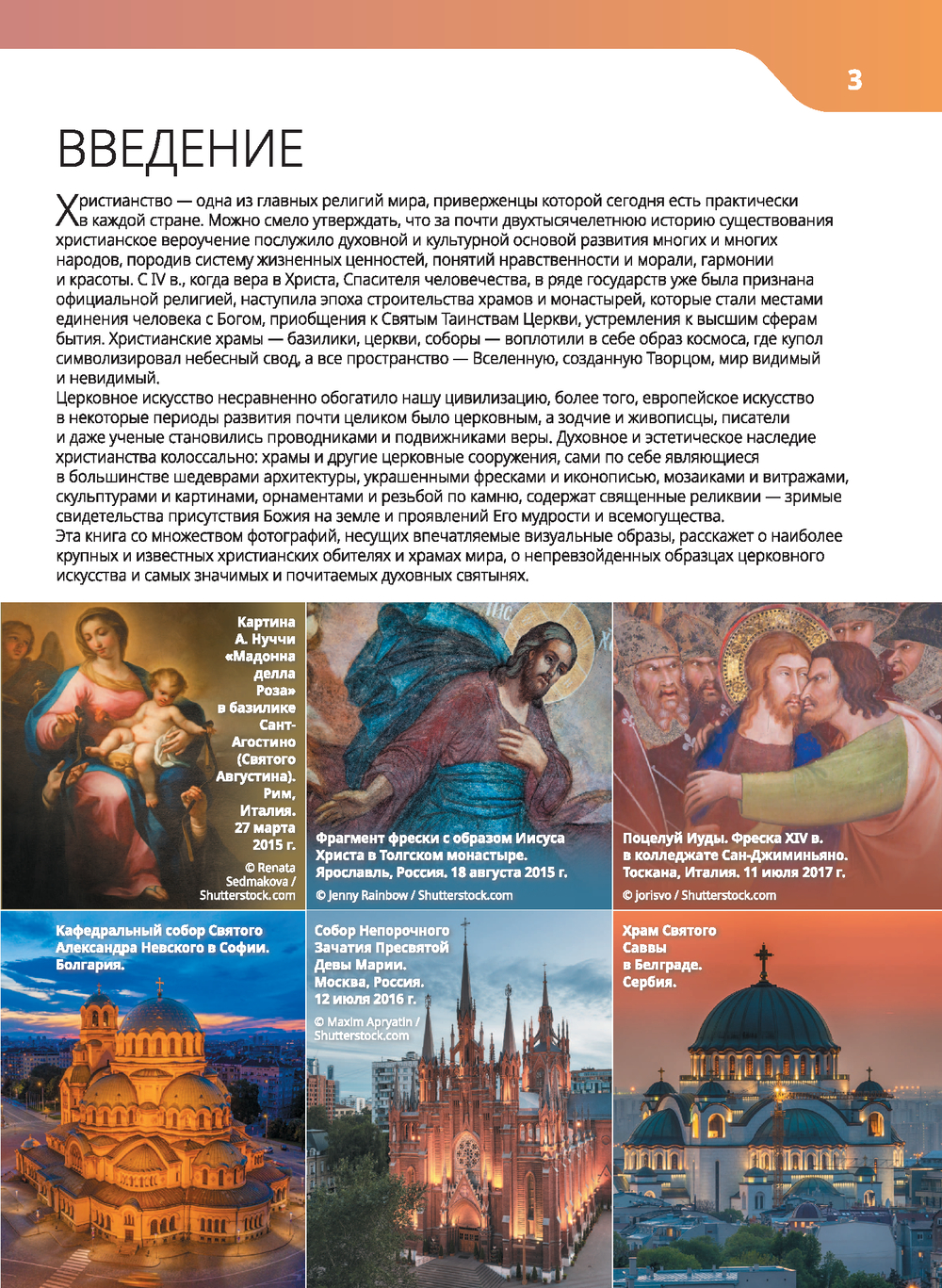 На страницах этого издания духовное наследие христианства, бережно хранимое в монастырях и храмах, предстает во всем многообразии и полноте. Эксклюзивные фотографии, исчерпывающие описания, важная информация и интересные факты позволят читателям совершить виртуальное паломничество по святым местам Израиля и Иордании, Египта и Греции, Армении и Болгарии, Италии и Испании, Франции и Германии и, конечно же, России, а также приобщиться к их многовековой церковной традиции.