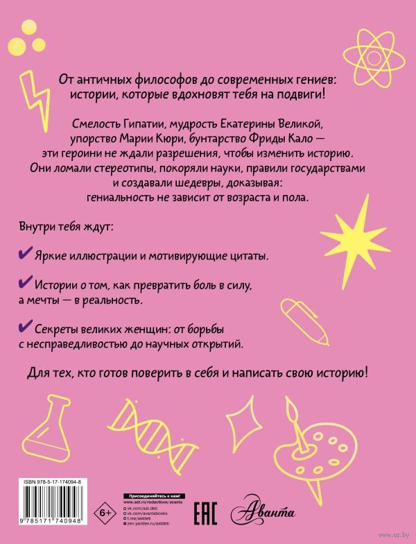 От древних времён до наших дней героини книги – учёные, политики, художницы, писательницы – доказывали, что упорство, талант и вера в себя способны преодолеть любые преграды.