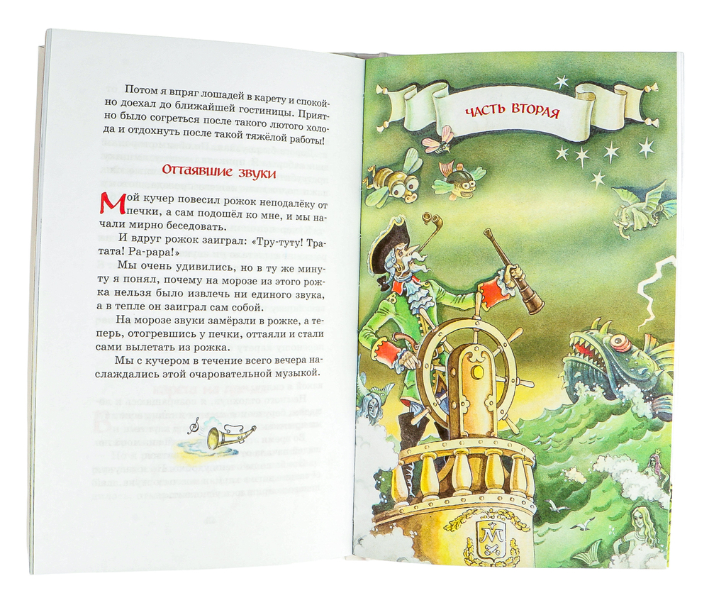 Барона Мюнхаузена знают во всём мире – он прославился рассказами о своих невероятных приключениях. Кто не помнит его историй о полёте на пушечном ядре и погоне за восьминогим зайцем, о том, как он забрался на Луну по стеблю боба и поджёг порох искрами из глаз? Никто конечно же не сомневается: всё происходящее с бароном Мюнхаузеном – чистая правда. Ну разве что кое-где чуть-чуть приукрашенная…