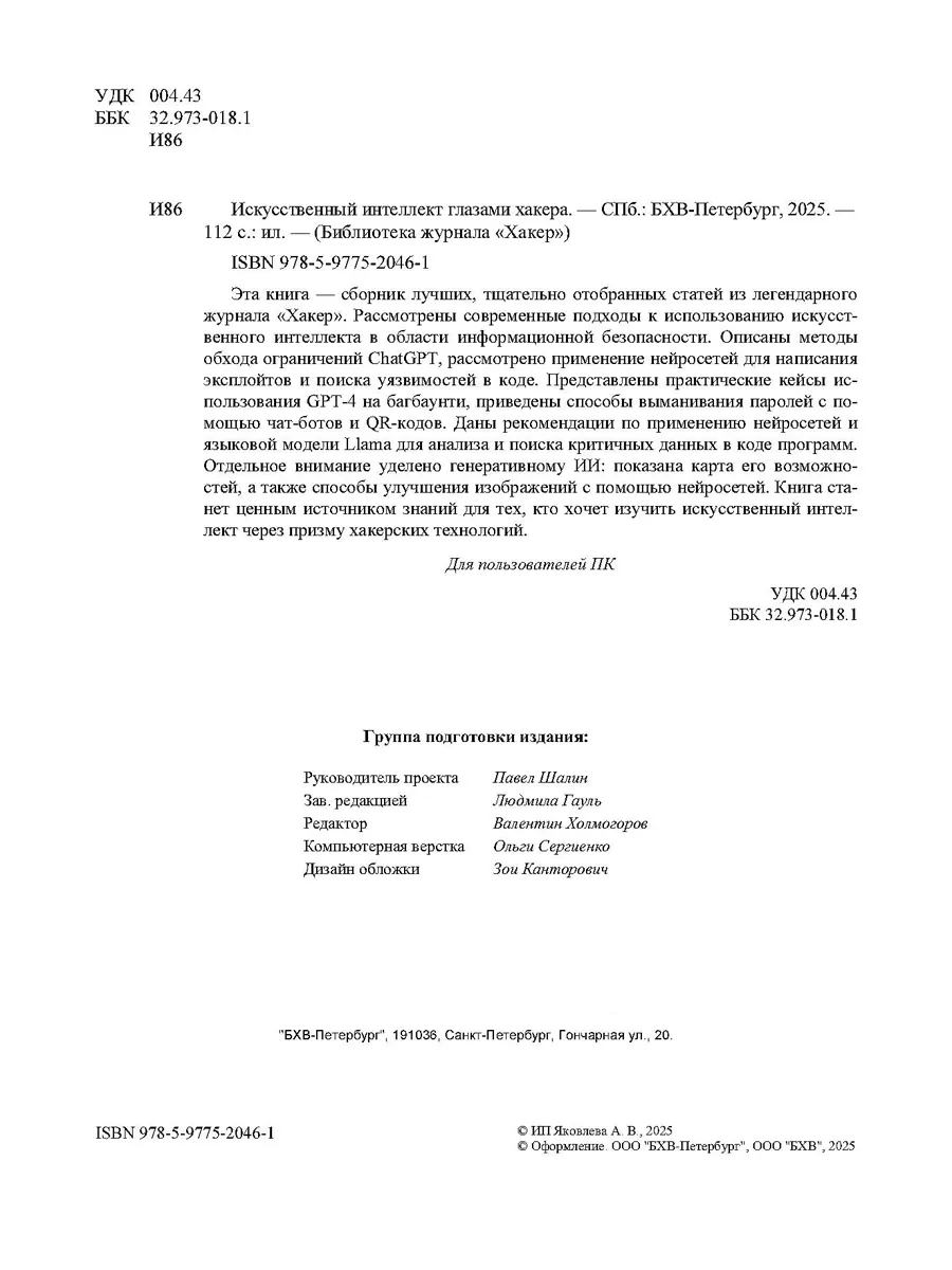 Книга станет ценным источником знаний для тех, кто хочет изучить искусственный интеллект через призму хакерских технологий.
