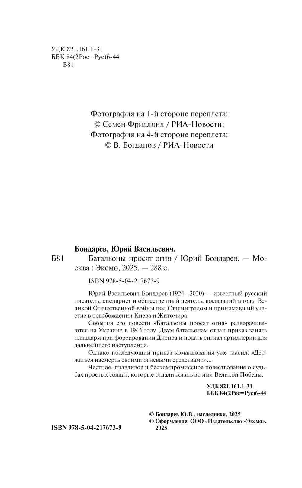 Юрий Васильевич Бондарев (1924—2020) – известный русский писатель, сценарист и общественный деятель, воевавший в годы Великой Отечественной войны под Сталинградом и принимавший участие в освобождении Киева и Житомира.