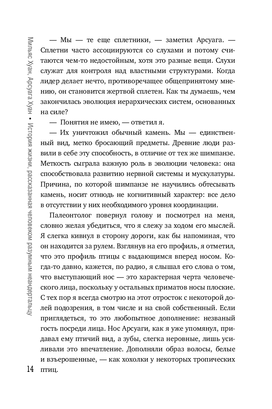 В книге искусно переплетаются научные факты и философские размышления, раскрывая перед читателем сложную и многогранную картину человеческого существования. Авторы не просто описывают этапы эволюции, различия между неандертальцами и сапиенсами, но и глубоко исследуют вопросы биологии, социальных структур, развитие технологий, искусства и культуры.