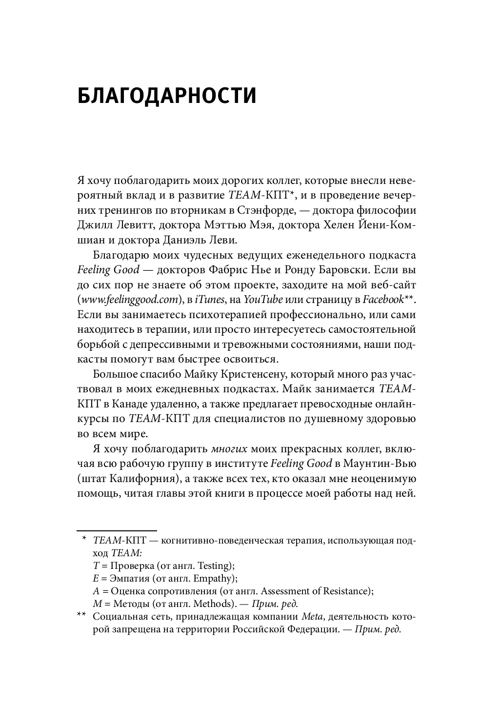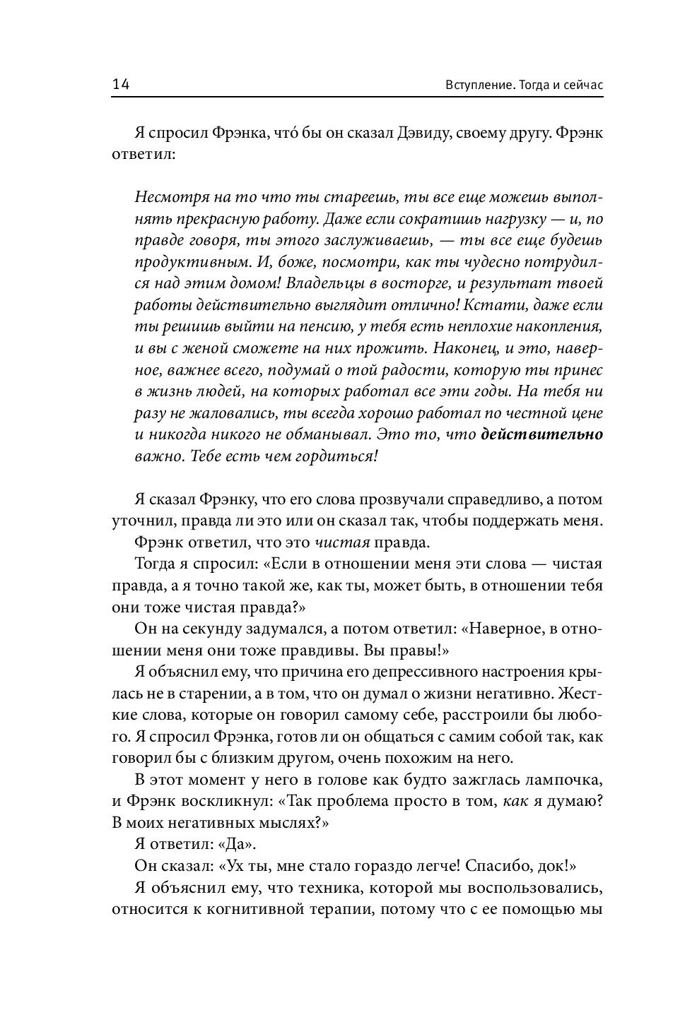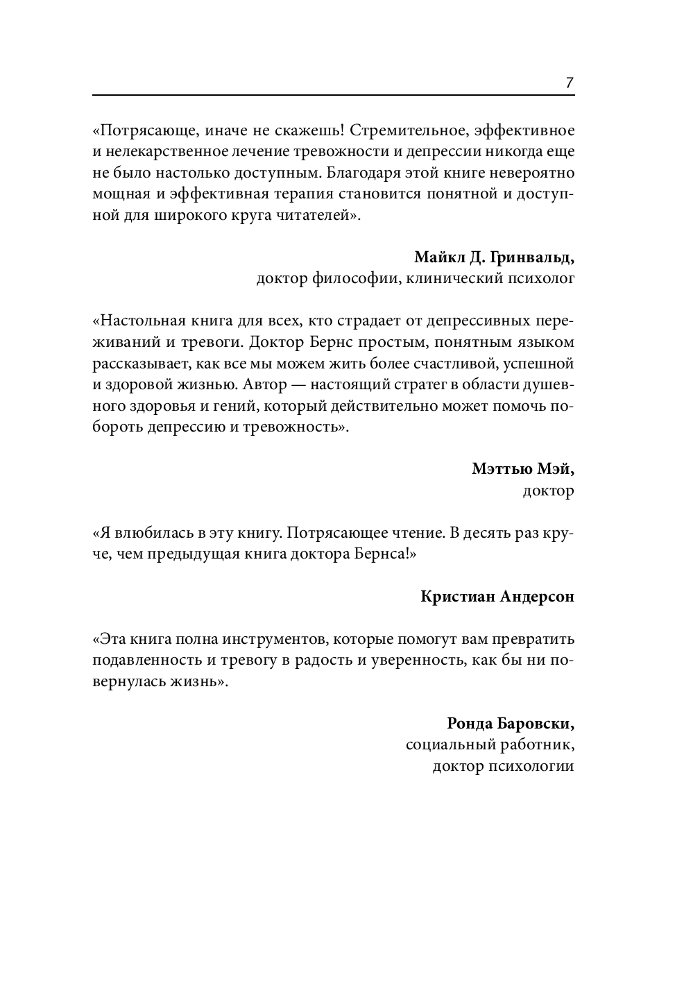 Перед вами самое последнее, дополненное издание классической работы Дэвида Бернса, основанное на новейших исследованиях в области психологии. В книге более 50 техник, с помощью которых вы сможете побороть негативные мысли и вызванные ими тревогу и подавленное настроение. Новые методы помогут развить чувство радости и позитивное отношение к себе и к жизни.