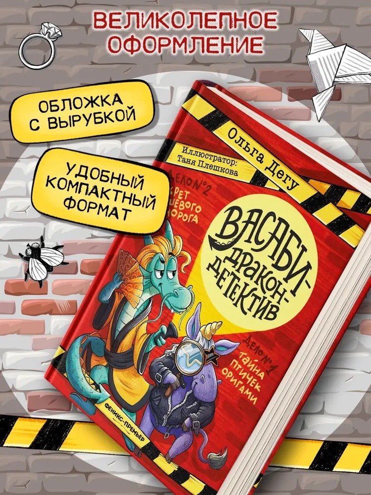 Первая книга из серии "Васаби – дракон-детектив" объединяет две детективные истории "Дело № 1. Тайна птичек оригами" и "Дело № 2. Секрет плюшевого единорога".