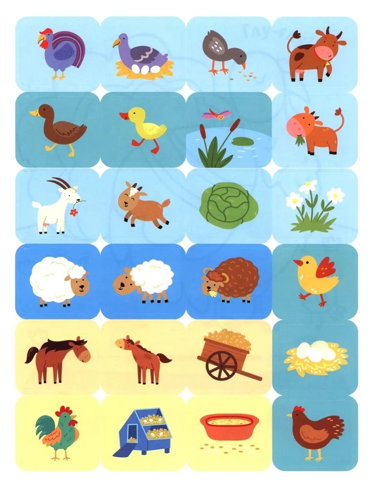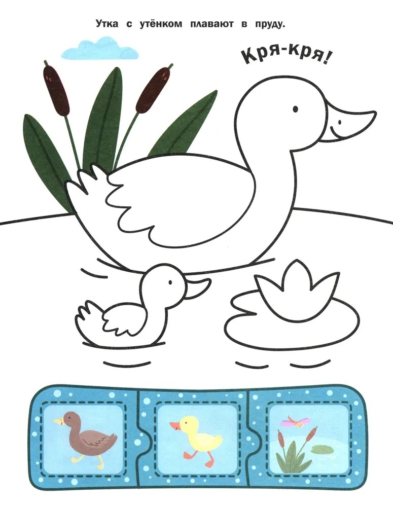 В книгах этой серии 16 картинок для раскрашивания, 48 наклеек для составления пазлов и звукоподражания для запуска речи! Это идеальный комплект для домашних занятий с ребёнком!