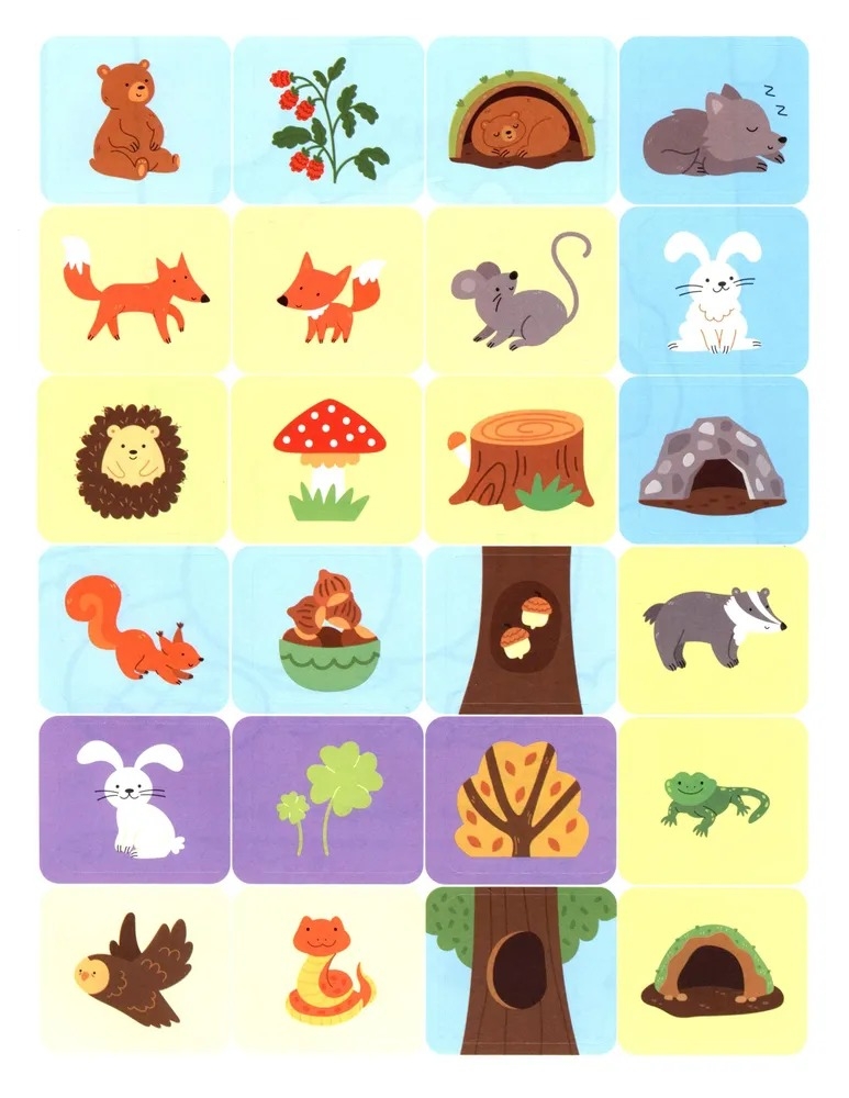В книгах этой серии 16 картинок для раскрашивания, 48 наклеек для составления пазлов и звукоподражания для запуска речи! Это идеальный комплект для домашних занятий с ребёнком!