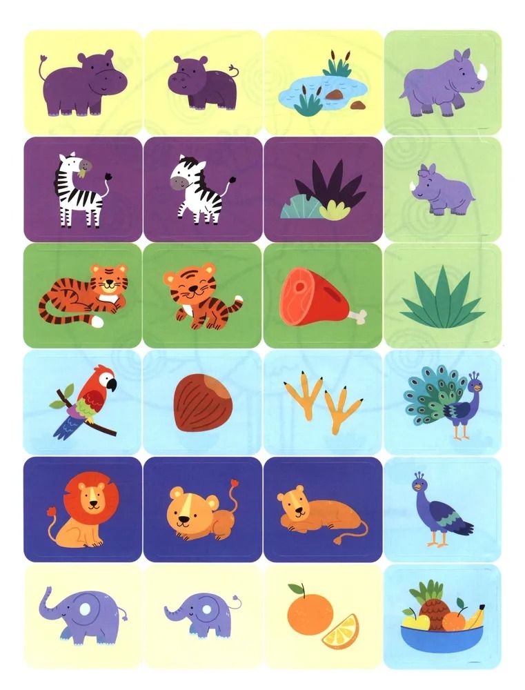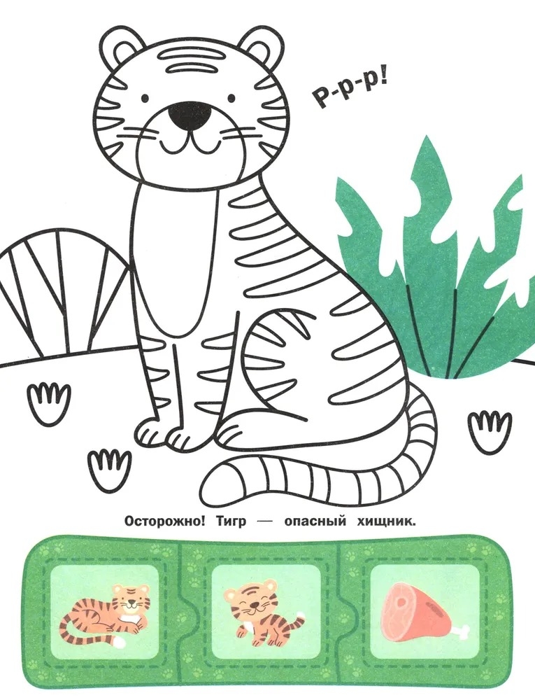 В книгах этой серии 16 картинок для раскрашивания, 48 наклеек для составления пазлов и звукоподражания для запуска речи! Это идеальный комплект для домашних занятий с ребёнком!