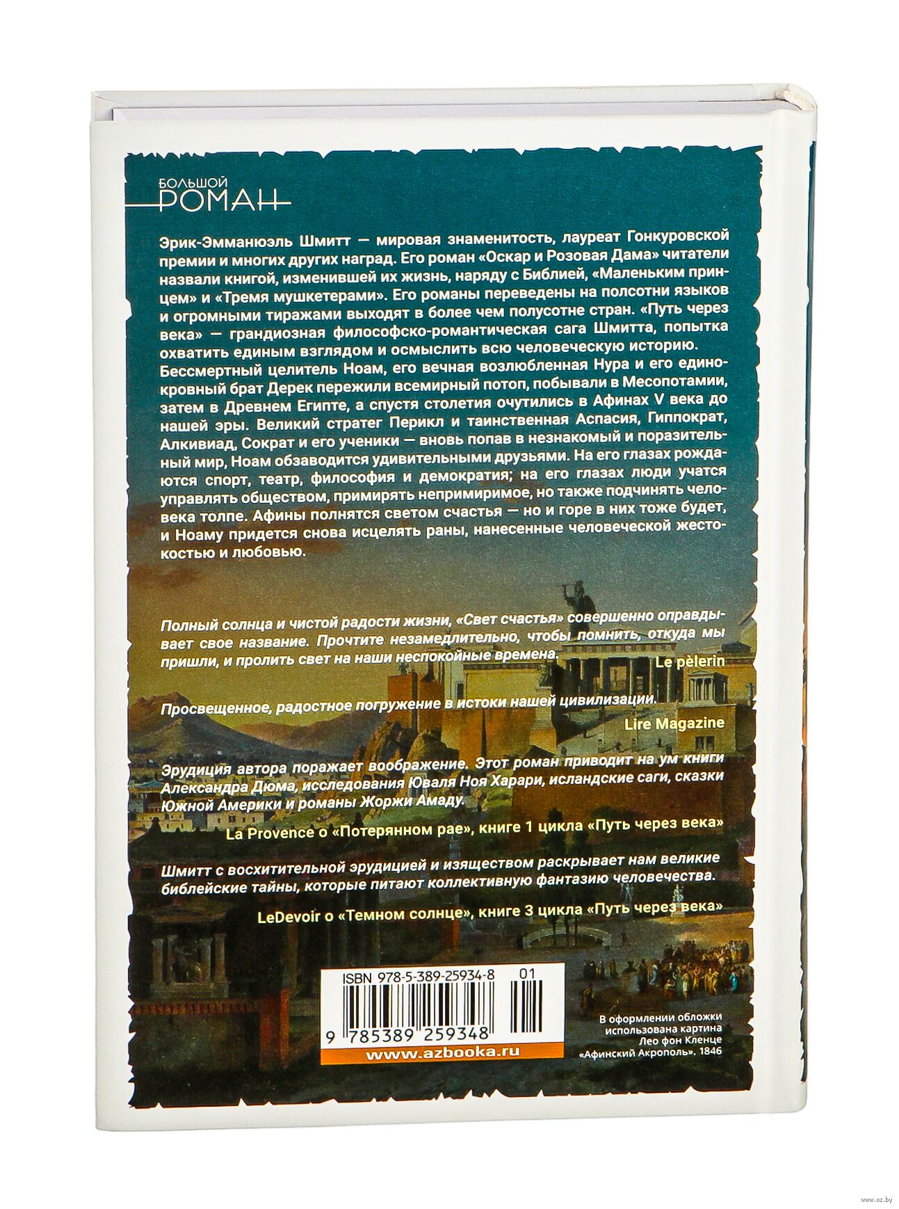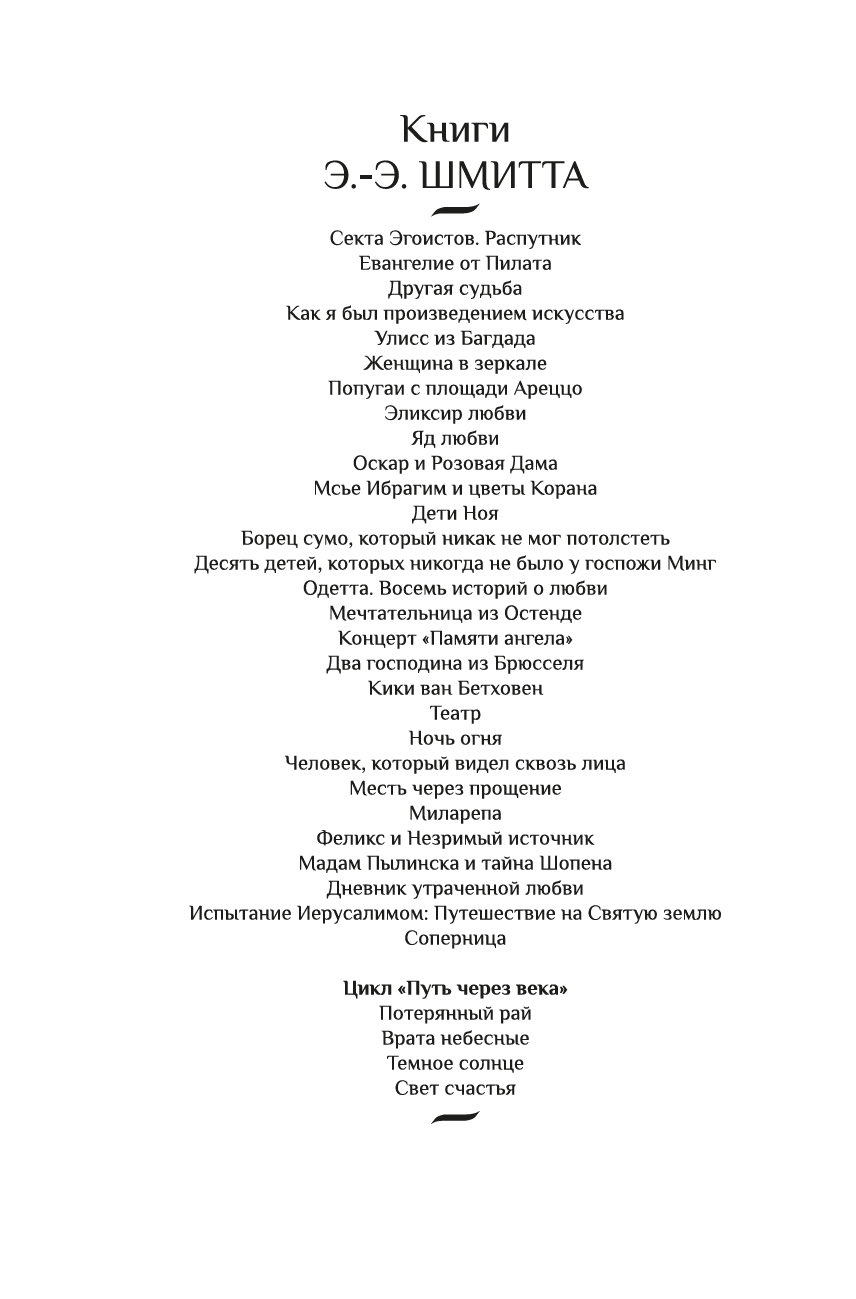 Эрик-Эмманюэль Шмитт – мировая знаменитость, лауреат Гонкуровской премии и многих других наград. Его роман "Оскар и Розовая Дама" читатели назвали книгой, изменившей их жизнь, наряду с Библией, "Маленьким принцем" и "Тремя мушкетерами". Его романы переведены на 45 языков и огромными тиражами выходят в более чем 50 странах. "Путь через века" – грандиозная философско-романтическая сага Шмитта, попытка охватить единым взглядом и осмыслить всю человеческую историю.