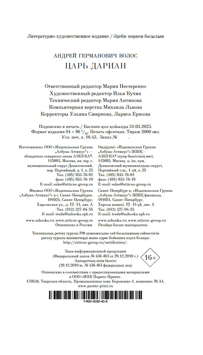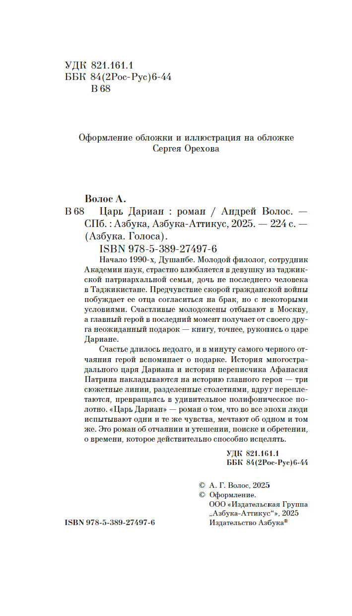 Счастье длилось недолго, и в минуту самого черного отчаяния герой вспоминает о подарке. История многострадального царя Дариана и история переписчика Афанасия Патрина накладываются на историю главного героя – три сюжетные линии, разделенные столетиями, вдруг переплетаются, превращаясь в удивительное полифоническое полотно. "Царь Дариан" – роман о том, что во все эпохи люди испытывают одни и те же чувства, мечтают об одном и том же. Это роман об отчаянии и утешении, поиске и обретении, о времени, которое действительно способно исцелять.