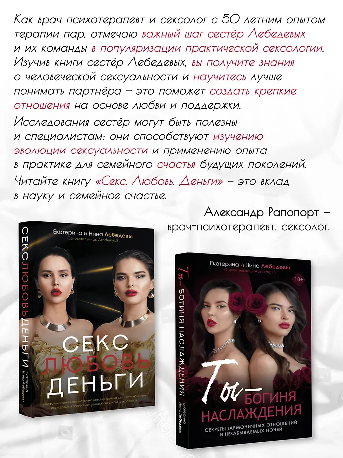 Откройте дверь в мир чувственных экспериментов! Эта книга станет вашим проводником к пробуждению страсти, укреплению любви и истинному наслаждению каждым мгновением близости. Здесь вы найдете ключи к гармонии в отношениях, раскроете безграничные возможности для эротического самопознания и постигнете сокровенные секреты совершенной близости, которыми с вами поделятся опытные эксперты. Позвольте себе погрузиться в этот чувственный водоворот и пережить незабываемые эмоции.