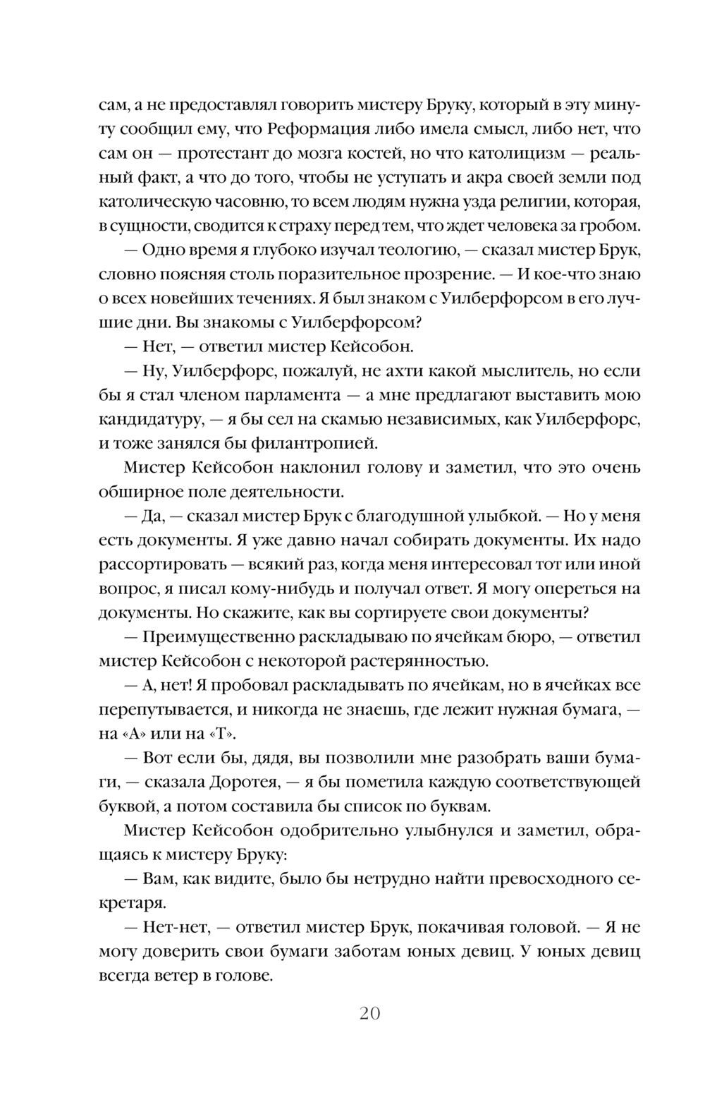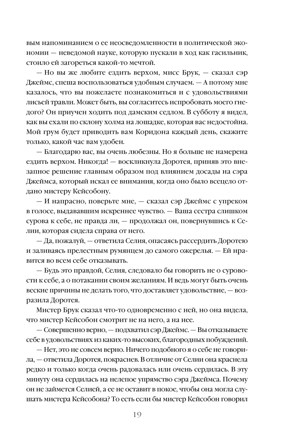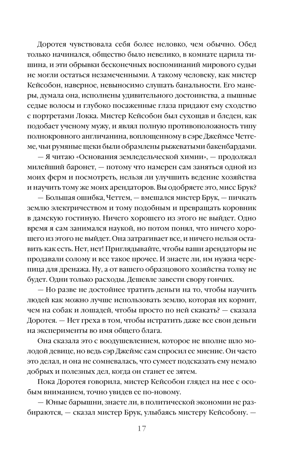 Умная, образованная Доротея Кейсобон, вышедшая за пожилого ученого-богослова, все больше разочаровывается в строптивом муже и все сильнее восхищается обаянием его бедного родственника Уилла... Блестящий молодой врач Лидгейт и не подозревает, что стал дичью, на которую ведет изощренную охоту юная красавица Розамонда... Брат Розамонды Фред, легкомысленный прожигатель жизни, все сильнее запутывается в долгах – и даже не замечает чувств доброй подруги Мэри Гарт...