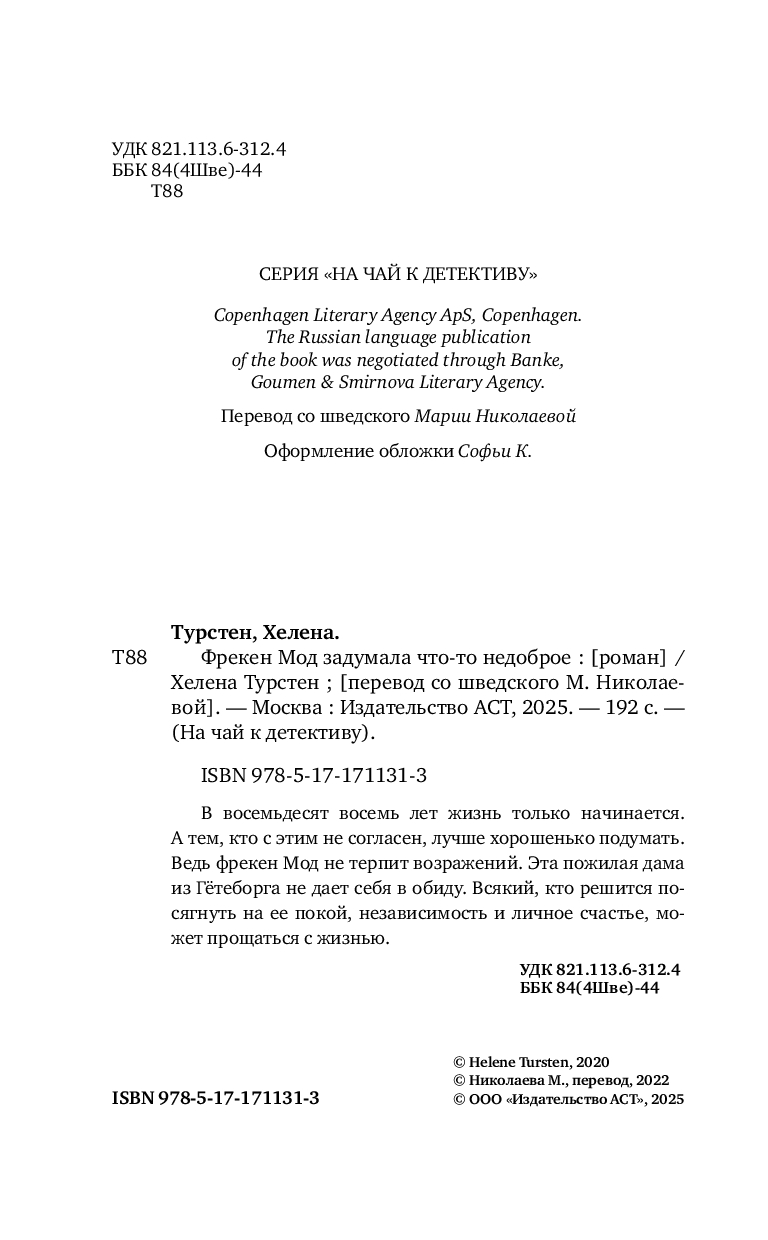 В восемьдесят восемь лет жизнь только начинается. А тем, кто с этим не согласен, лучше хорошенько подумать. Ведь фрекен Мод не терпит возражений. Эта пожилая дама из Гётеборга не дает себя в обиду. Всякий, кто решится посягнуть на ее покой, независимость и личное счастье, может прощаться с жизнью.