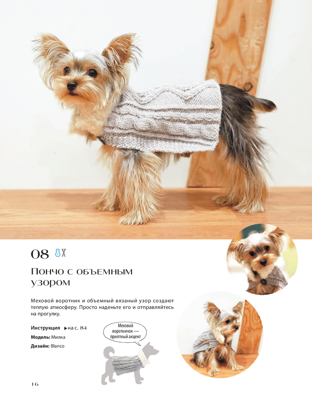Приковывайте взгляды всех соседей на прогулке с собакой! Нам всем хочется выглядеть стильно в любую погоду, и в снег, и в дождь, но в то же время оставаться в тепле. Чем же наши питомцы хуже? С этой книгой вы сможете связать для любимой собаки гардероб на любую погоду, который будет не только функциональным, но еще и очень красивым: свитера, шапочки, накидки – вы найдете дизайн для собаки любой породы. А в дополнение к образу питомца свяжите для себя варежки, шапку, шарф и даже сумку с таким же дизайном!