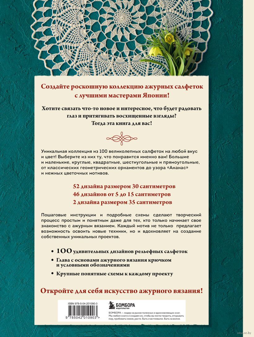 Хотите связать что-то новое и интересное, что будет радовать глаз и притягивать восхищенные взгляды? Тогда эта книга для вас! Лучшие японские мастера представляют уникальную коллекцию из 100 ажурных салфеток, которые украсят ваш дом или станут прекрасным подарком. 52 крупные салфетки, 46 миниатюрных и 2 эксклюзивные: большие и маленькие, круглые, квадратные и шестиугольные, с классическими орнаментами, узором "Ананас" и цветочными мотивами – выберите дизайн, который понравится именно вам!
