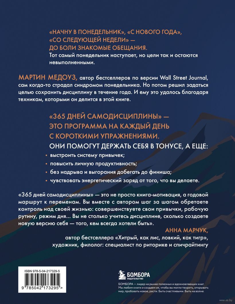 В своей книге он дает короткие ежедневные упражнения, которые помогут держать себя в тонусе и сохранять дисциплину в течение всего года. Вы научитесь выстраивать систему привычек, справляться с задачами без выгорания и доходить до цели с наибольшей эффективностью.