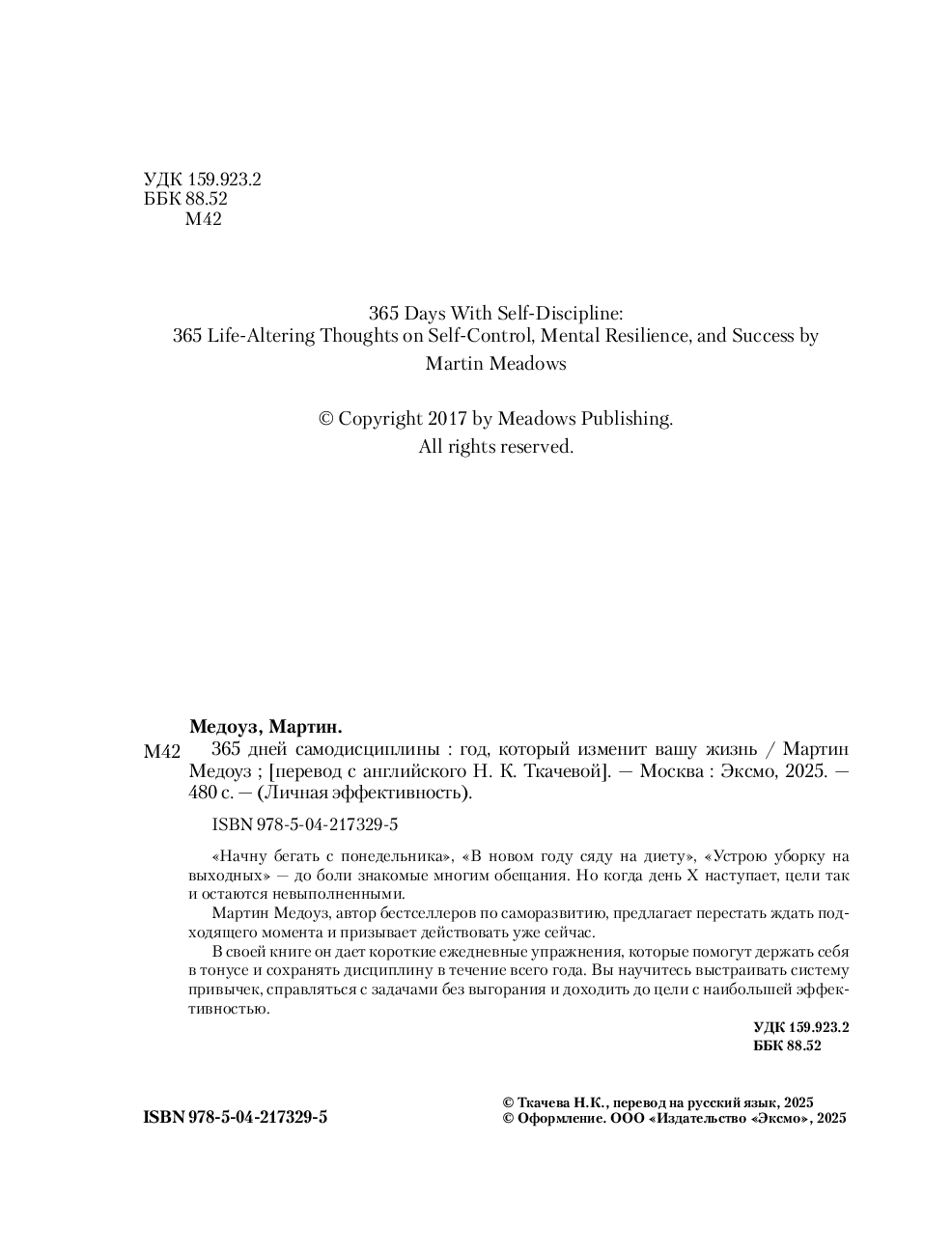 | Название в оригинале | 365 Days With Self-Discipline: 365 Life-Altering Thoughts on Self-Control, Mental Resilience, and Success |