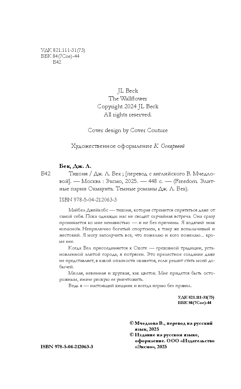 | Серия | Freedom. Элитные парни Окмаунта. Темные романы Дж. Л. Бек |