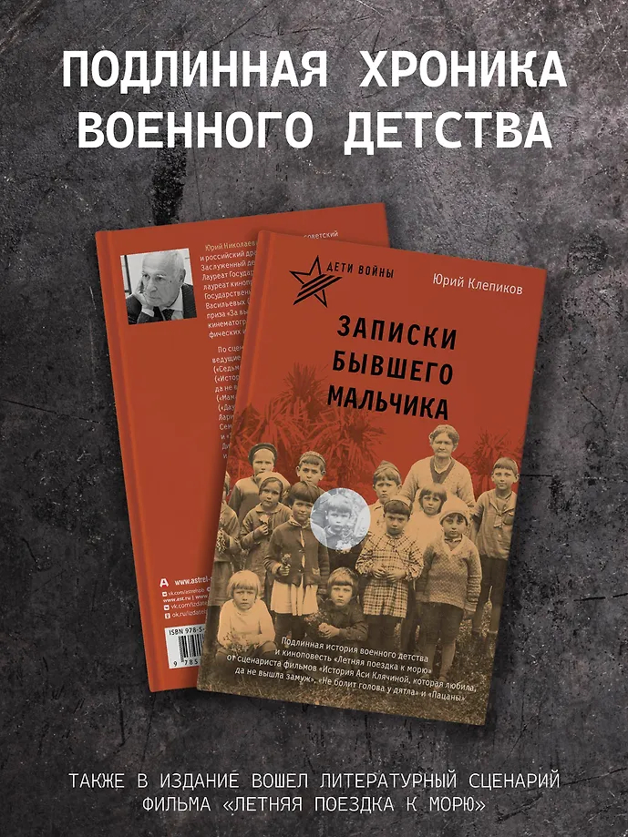 В книгу советского и российского кинодраматурга Юрия Клепикова включены автобиографическая повесть о военном детстве "Записки бывшего мальчика" и литературный сценарий "Летняя поездка к морю", по которому снят одноименный фильм – один из самых правдивых фильмов о Великой отечественной войне.