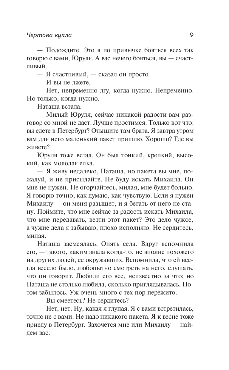 Главный герой романа, молодой и обаятельный студент Юрий Двоекуров, он же Юруля, живет в свое удовольствие – ходит на занятия, играет в карты, заводит романы – и совершенно не заботится о завтрашнем дне. Многим непонятен его образ жизни, циничное и эгоистичное поведение юноши вызывает у окружающих неприязнь, но в то же время притягивает и завораживает их. "Чертова кукла" – такое прозвище получает Юруля. Человек без бога, без будущего...