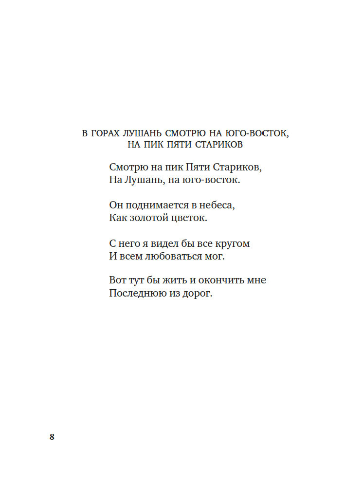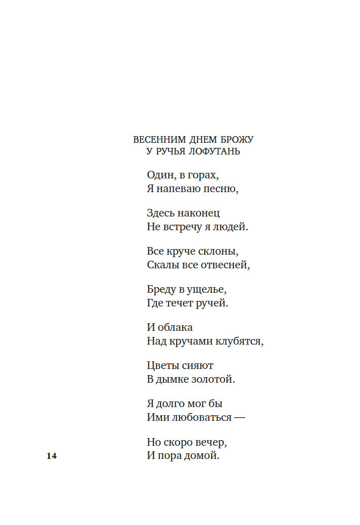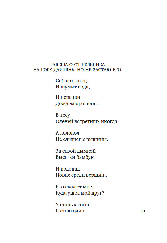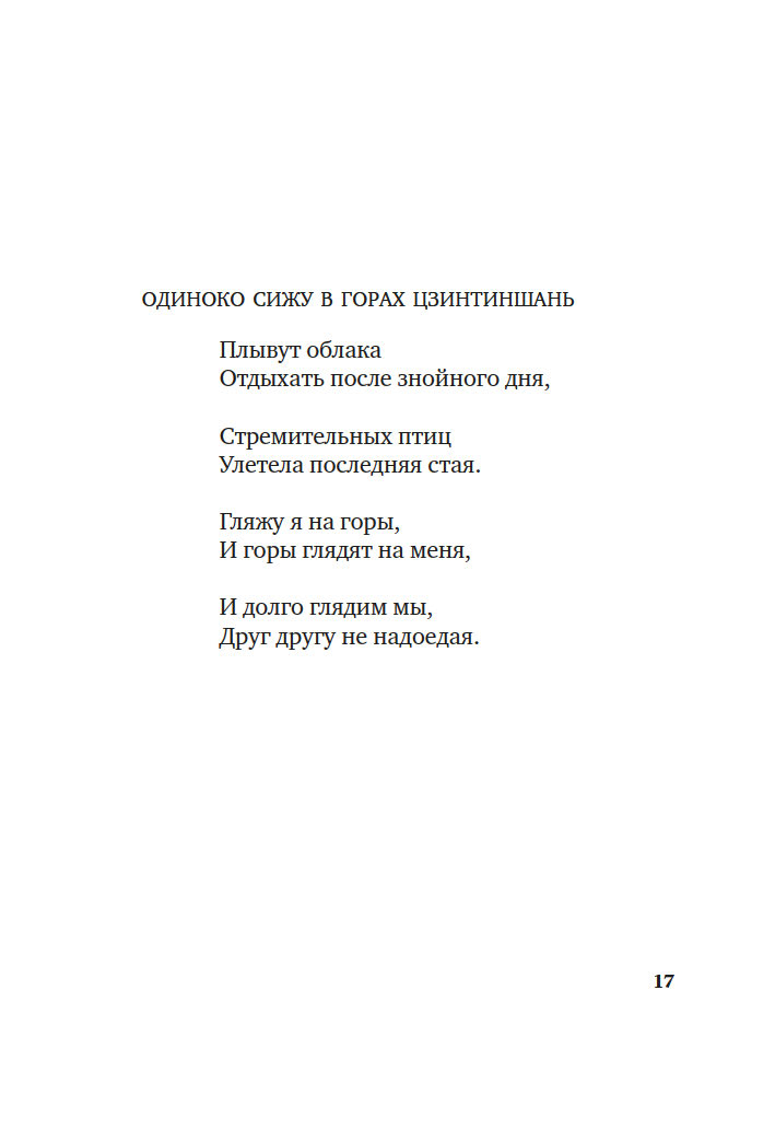 Свободолюбивый бродяга и воин Ли Бо (701–762), умудренный лишениями Ду Фу (712–770), утонченный аристократ и художник Ван Вэй (699–759) – они были современниками, и друзьями, и участниками самой масштабной гражданской войны, сотрясавшей Китай. Их стихи удивительно созвучны любым временам, потому что по большому счету все они о главном: о любви и разлуке, дороге и войне, красоте вечной природы и скоротечности бытия.