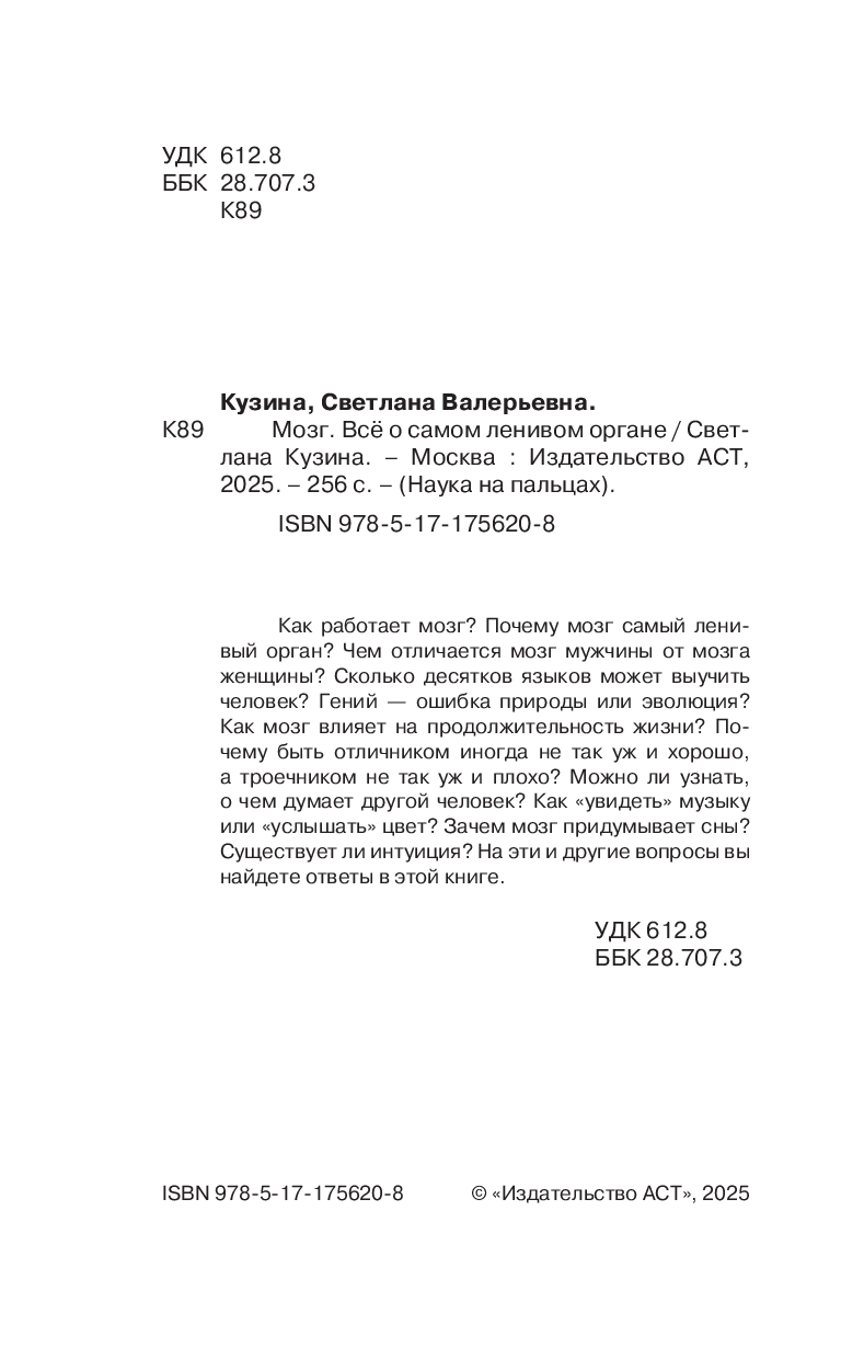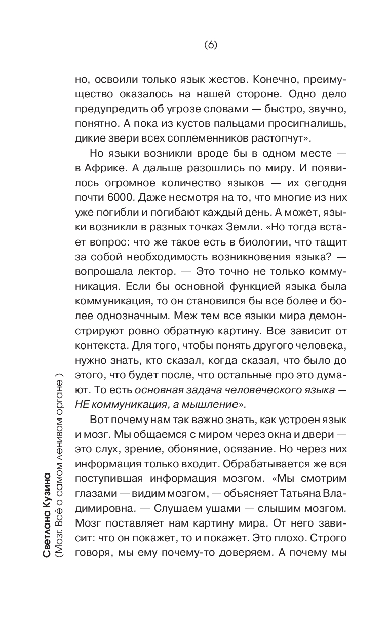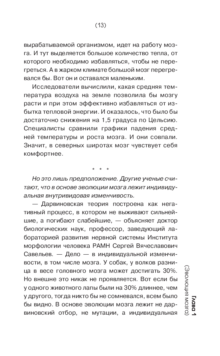 Как работает мозг? Почему мозг самый ленивый орган? Чем отличается мозг мужчины от мозга женщины? Сколько десятков языков может выучить человек? Гений – ошибка природы или эволюция? Как мозг влияет на продолжительность жизни? Почему быть отличником иногда не так уж и хорошо, а троечником не так уж и плохо? Можно ли узнать, о чeм думает другой человек? Как "увидеть" музыку или "услышать" цвет? Зачем мозг придумывает сны? Существует ли интуиция? На эти и другие вопросы вы найдете ответы в этой книге.