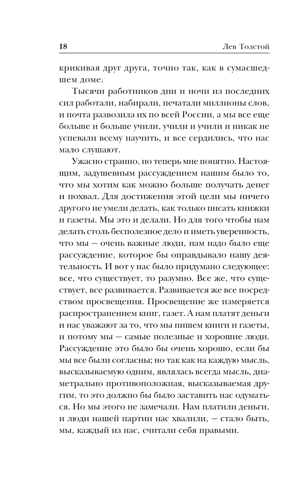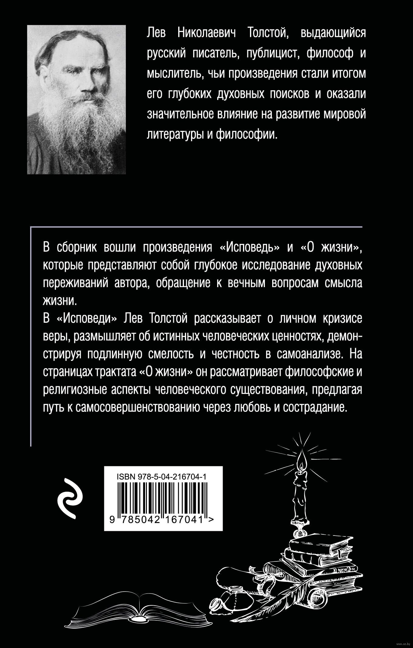 В сборник вошли два философских произведения "Исповедь" и "О жизни", раскрывающие глубоко личные духовные поиски великого писателя. В "Исповеди" Толстой размышляет о смерти и экзистенциальных страхах, ищет ответы на вечные вопросы бытия, наблюдая за жизнью простых людей, чей труд придает существованию высший смысл. Автор поднимает вопросы о противоположности жизни и смерти, истины и заблуждений, а также об индивидуальности религиозной веры человека. "О жизни" дополняет "Исповедь", представляя философию и мировоззрение Толстого в последние годы его творчества. Трактат предлагает новое понимание смысла жизни через служение нравственным идеалам, отвергая страх перед смертью. Лев Толстой откровенно делится историей своих духовных исканий и выводами, послужившими отправными точками его философии.