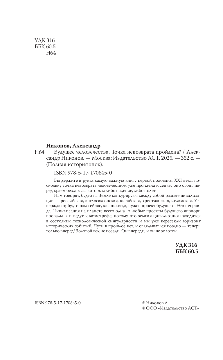 Вы держите в руках самую важную книгу первой половины XXI века, поскольку точка невозврата человечеством уже пройдена и сейчас оно стоит перед краем бездны, за которым либо падение, либо полет.
