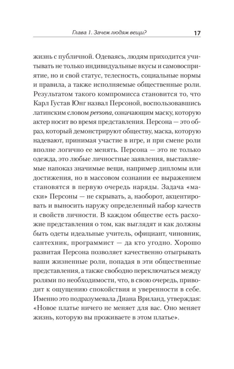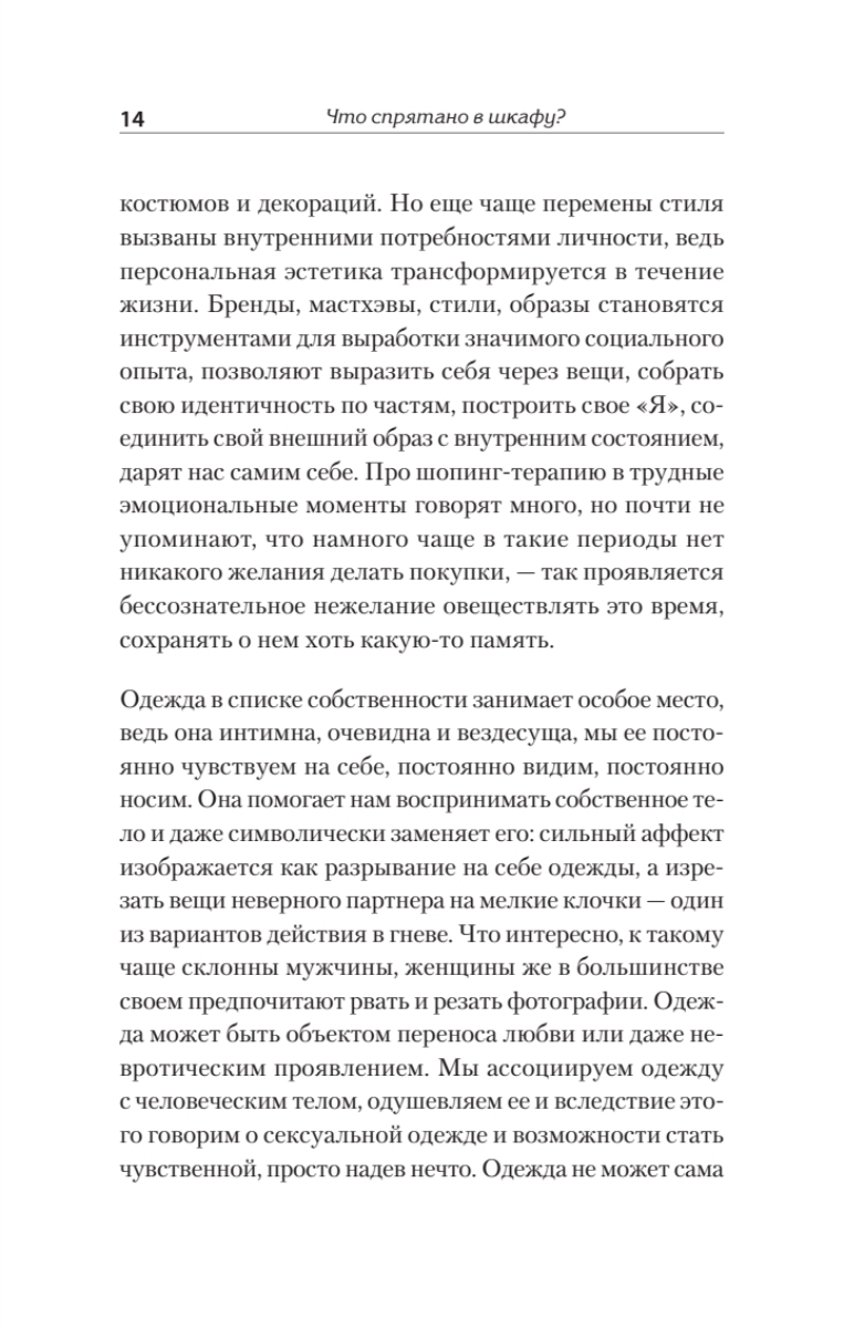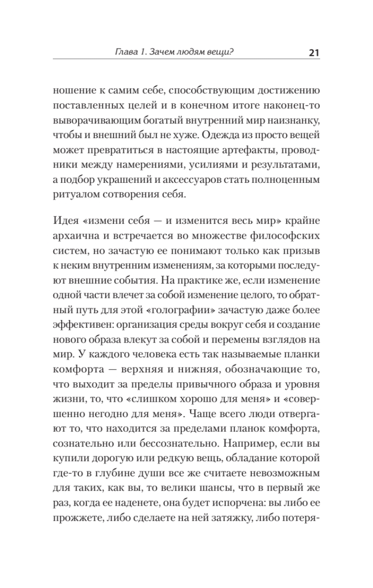 Эта книга не о моде как социологическом процессе, явлении массовой культуры или модных стандартах. Она о том, что одежда может сделать для вас, и речь даже не про впечатление, производимое на окружающих. Вопрос "Как я выгляжу?" слишком банален и заслуживает значительно меньшего внимания, чем вопрос "Что я чувствую?".