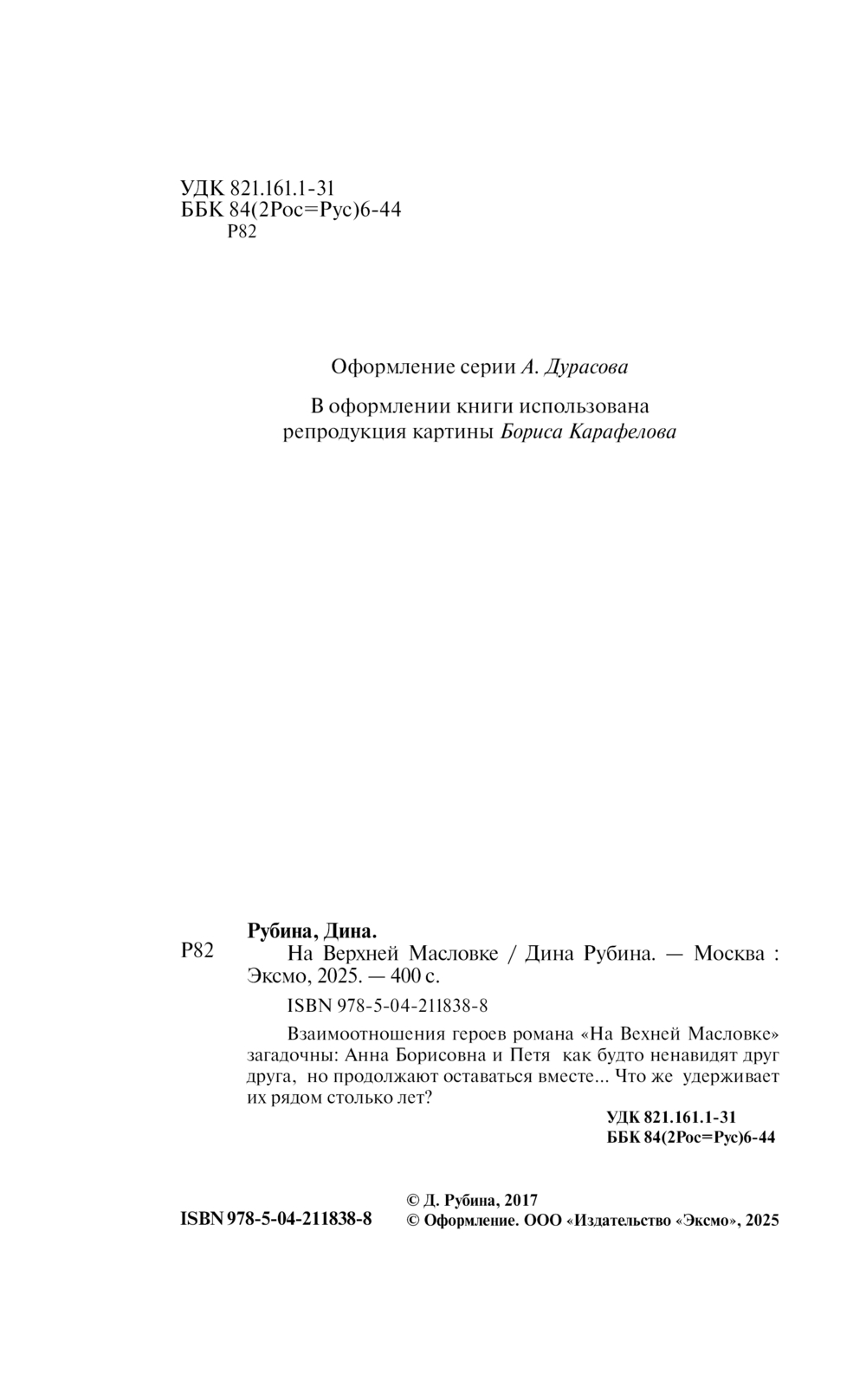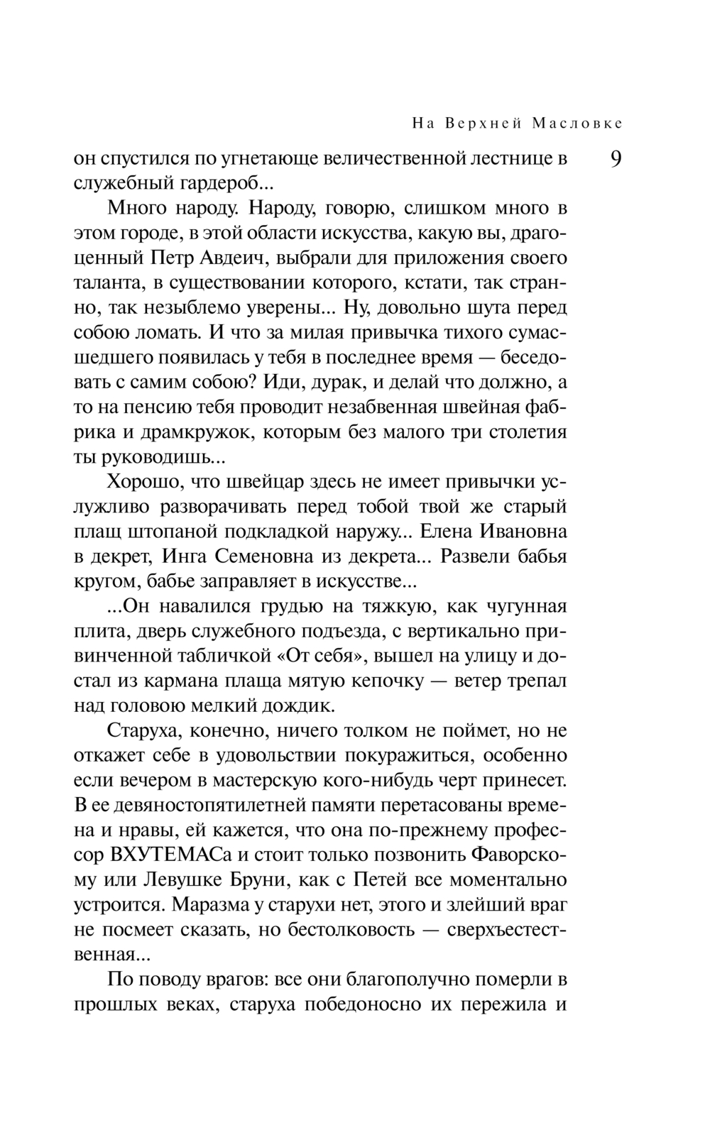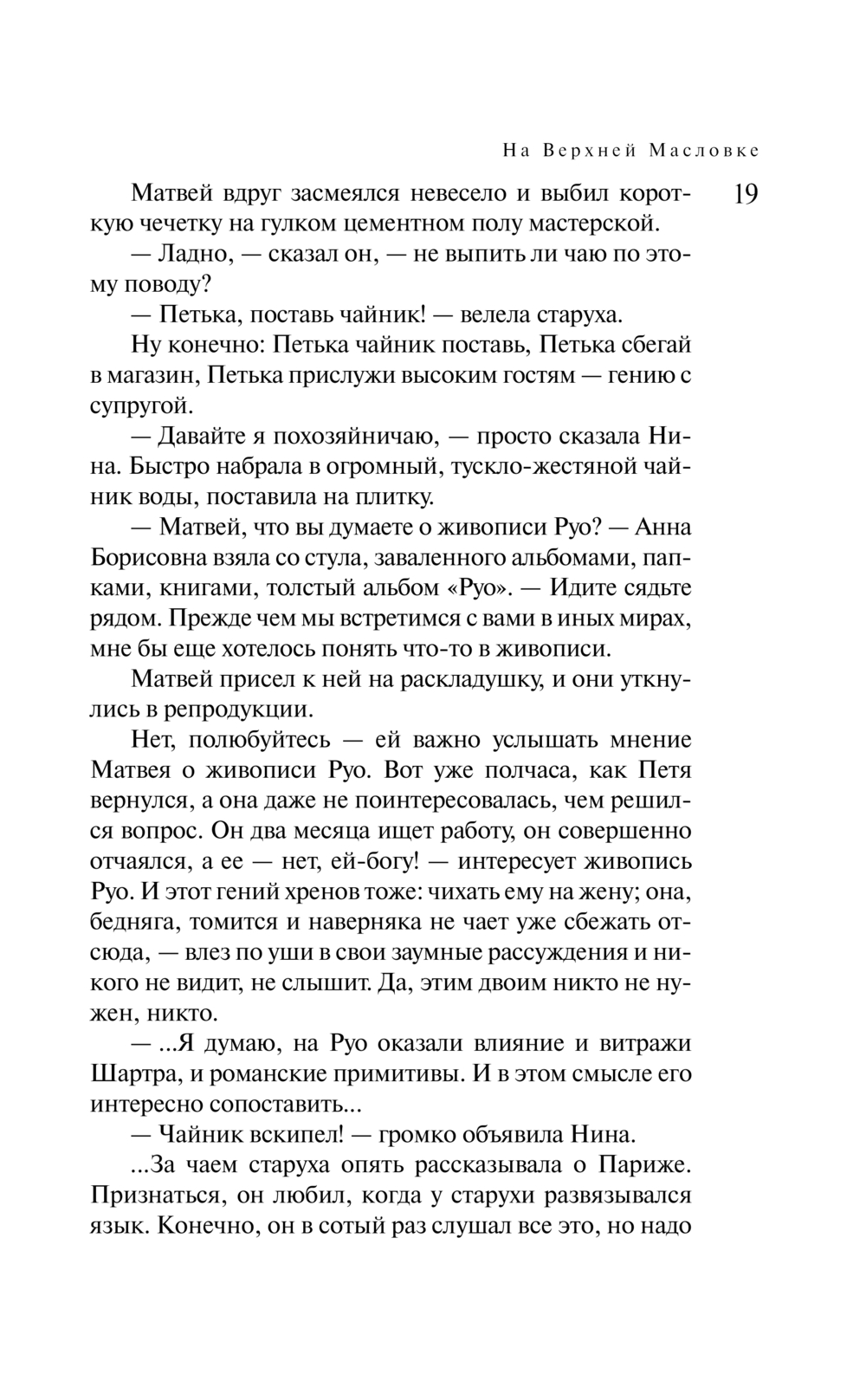 Взаимоотношения героев романа "На Верхней Масловке" загадочны: Анна Борисовна и Петя как будто ненавидят друг друга, но продолжают оставаться вместе... Что же удерживает их рядом столько лет?