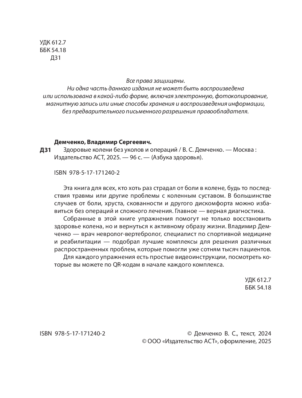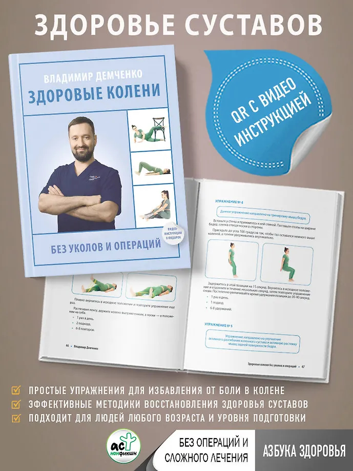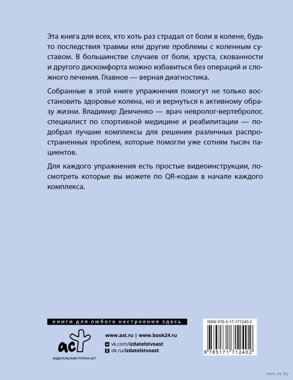 Собранные в этой книге упражнения помогут не только восстановить здоровье колена, но и вернуться к активному образу жизни. Владимир Демченко – врач невролог-вертебролог, специалист по спортивной медицине и реабилитации – подобрал лучшие комплексы для решения различных распространенных проблем, которые помогли уже сотням тысяч пациентов.