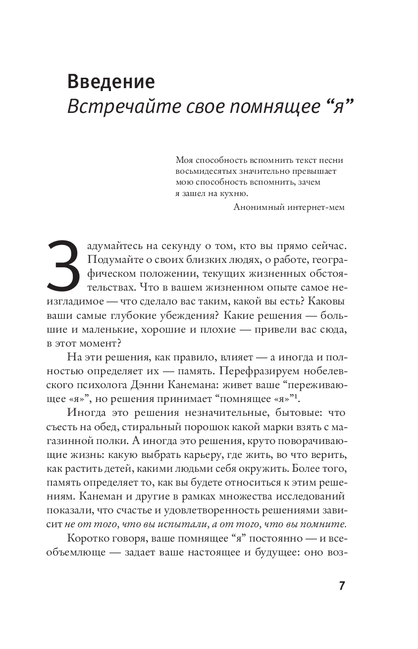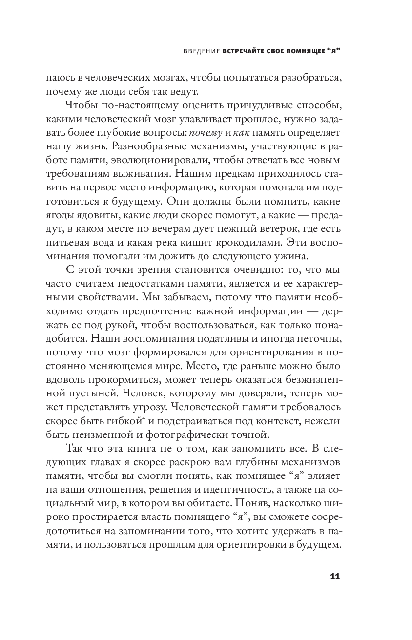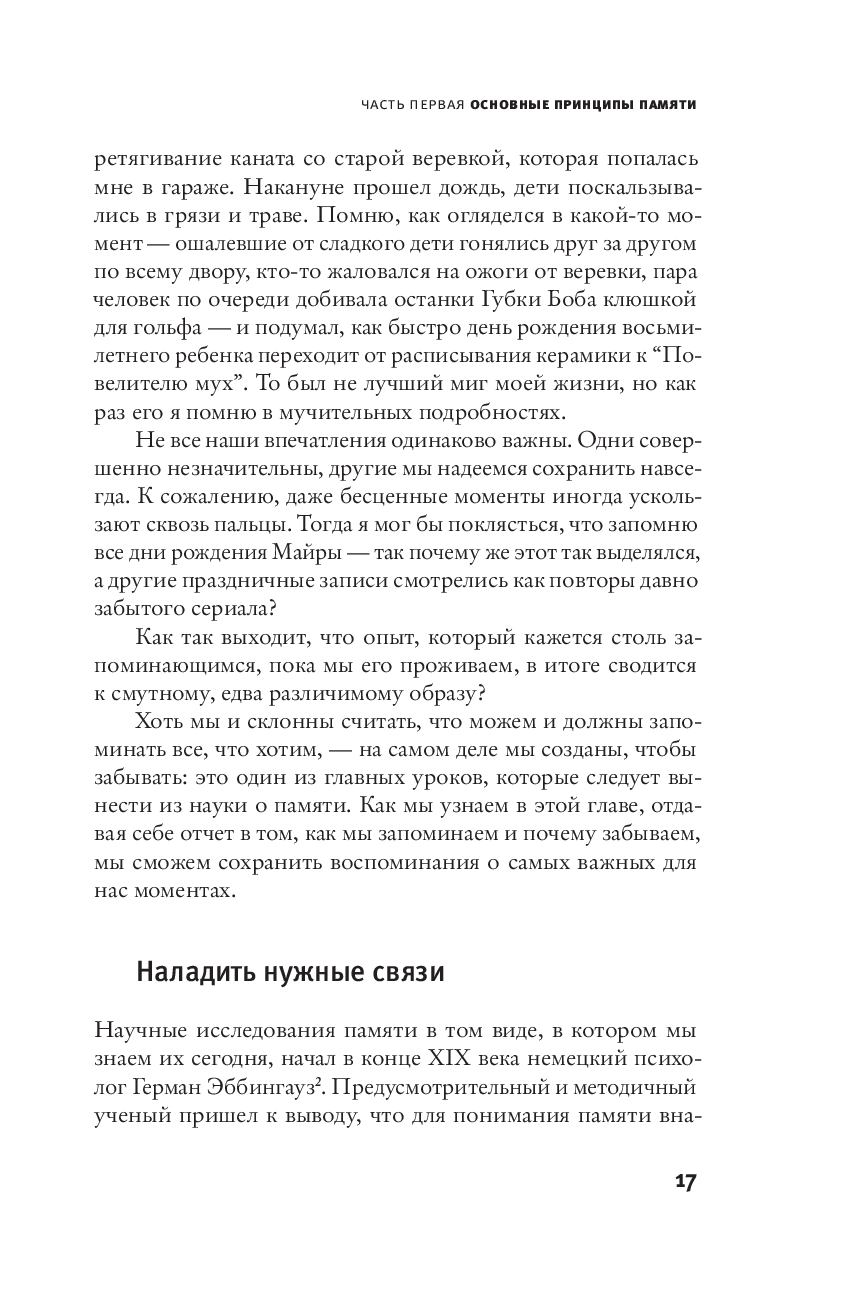 Нейробиолог Чаран Ранганат исследует фундаментальные механизмы человеческой памяти, опираясь на последние открытия в области нейронауки, когнитивной психологии и эволюционной биологии. Он рассматривает ключевые аспекты работы памяти: консолидацию воспоминаний, селективное забывание, роль сна в обработке информации, влияние эмоций на запоминание и нейронные основы автобиографической памяти. Особое внимание автор уделяет практическим аспектам: формированию долговременной памяти, связи памяти с принятием решений, влиянию цифровых технологий на когнитивные способности и методам улучшения памяти в повседневной жизни.