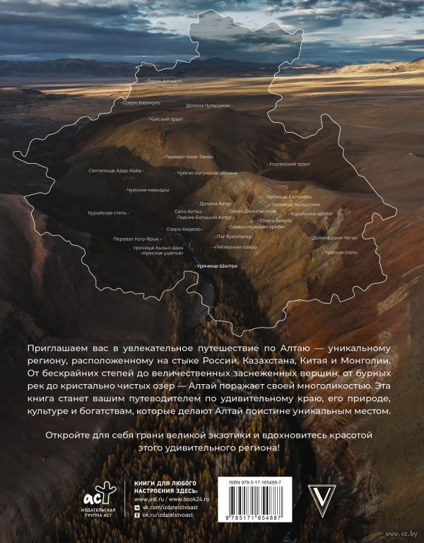 Приглашаем вас в увлекательное путешествие по Алтаю – уникальному региону, расположенному на стыке России, Казахстана, Китая и Монголии. От бескрайних степей до величественных заснеженных вершин, от бурных рек до кристально чистых озёр – Алтай поражает своей многоликостью. Эта книга станет вашим путеводителем по удивительному краю, его природе, культуре и богатствам, которые делают Алтай поистине уникальным местом.