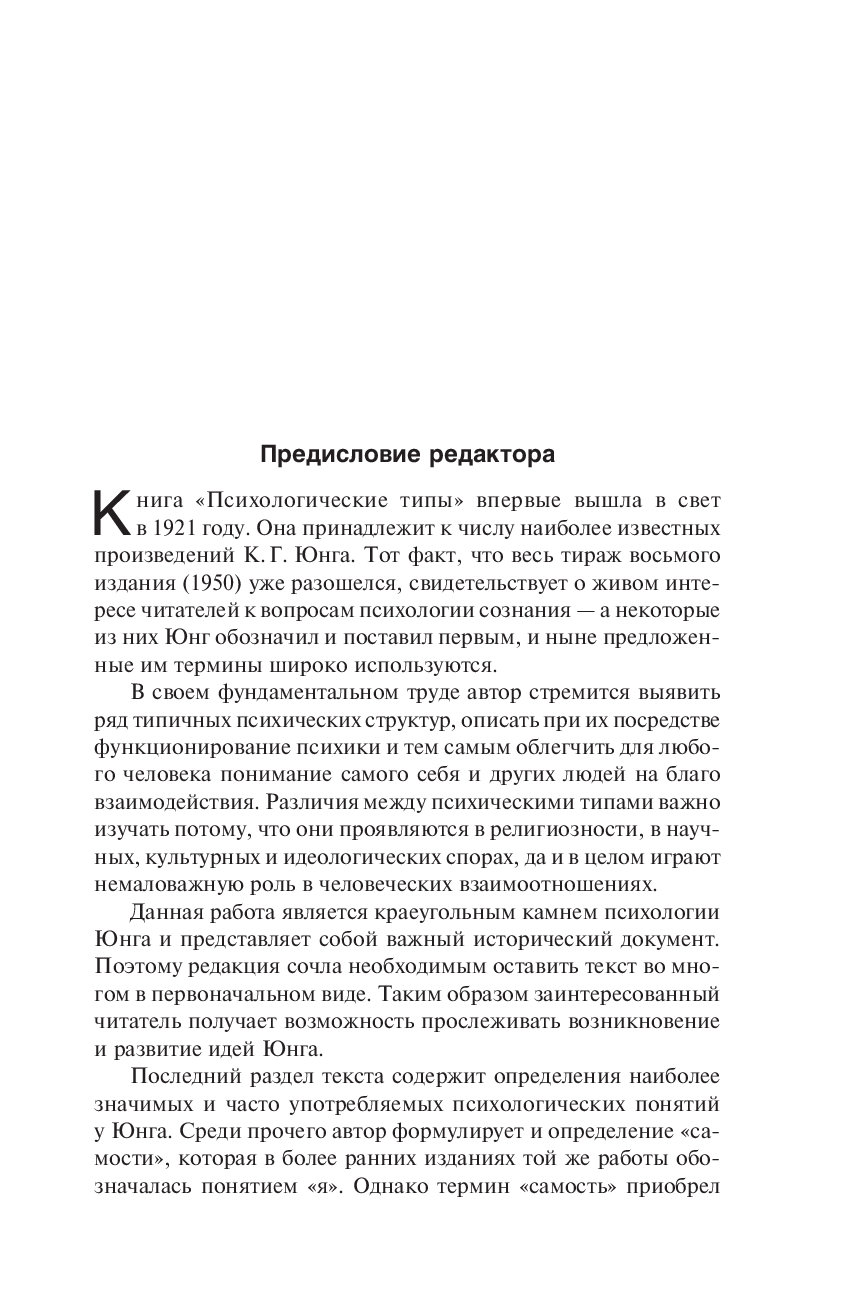 "Психологические типы" – программная работа Юнга, посвященная классификации типов личности. Этот поистине монументальный труд, совершивший переворот в аналитической психологии, внес неоценимый вклад в развитие теоретического и практического психоанализа и считается одним из самых значимых достижений Юнга. Именно в этой книге он впервые ввел понятия интраверсии и экстраверсии и описал, как они проявляются в обыденной жизни.