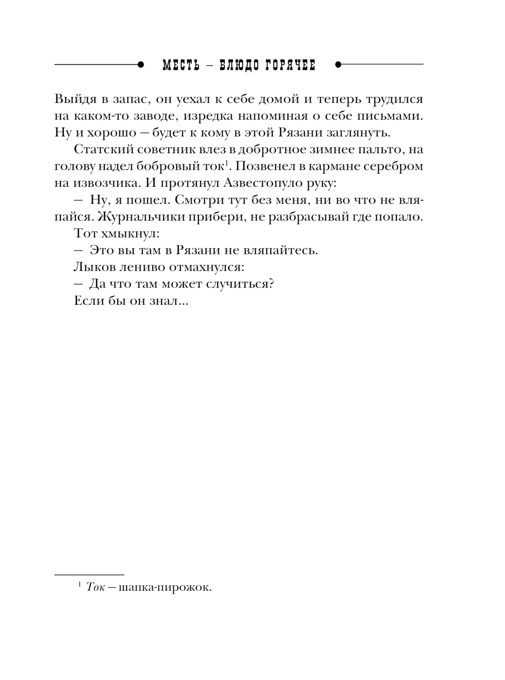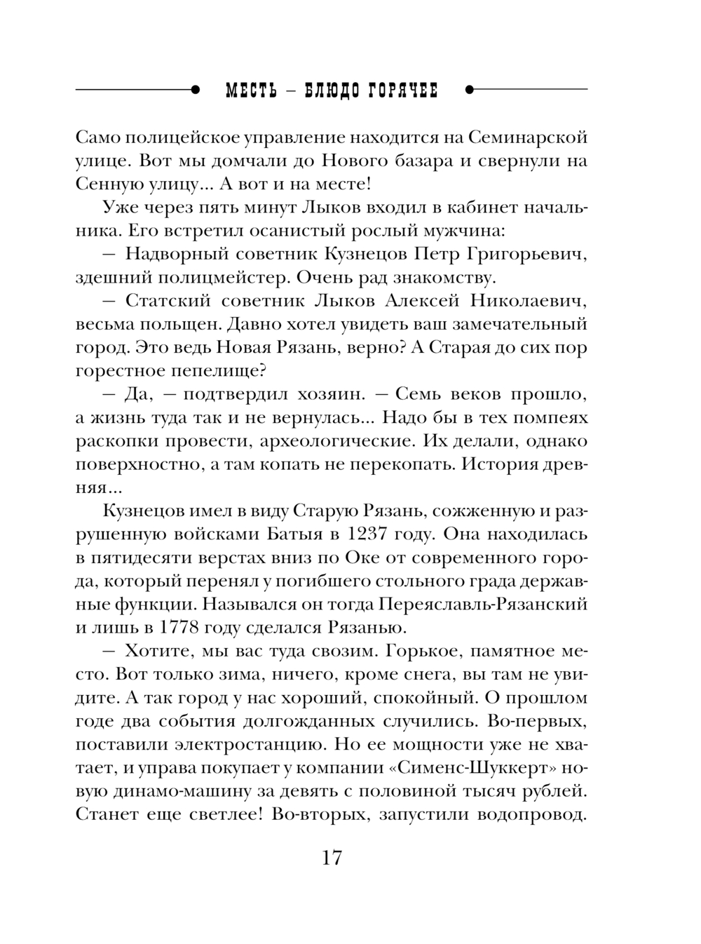 Но подарок приносит беду – сторожа убивают и грабят. Формальная командировка обретает новый смысл. Лыков считает долгом покарать убийц бывшего денщика своего друга. Он выходит на след некоего Егора Князева по кличке Князь – человека, отличающегося амбициями и жестокостью. Однако задержать его в Рязани не удаётся...