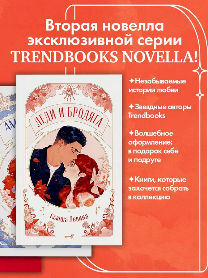 "Леди и Бродяга" – нежная и остроумная новелла о любви Ксюши Левиной в новой серии Trendbooks Novella! Волшебный дизайн обложки Карины Яшагиной, атмосферное оформление страниц и уникальный формат с плотной и долговечной мягкой обложкой и иллюстрированными клапанами – идеальный подарок для настоящих книжных романтиков.