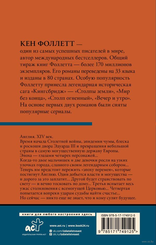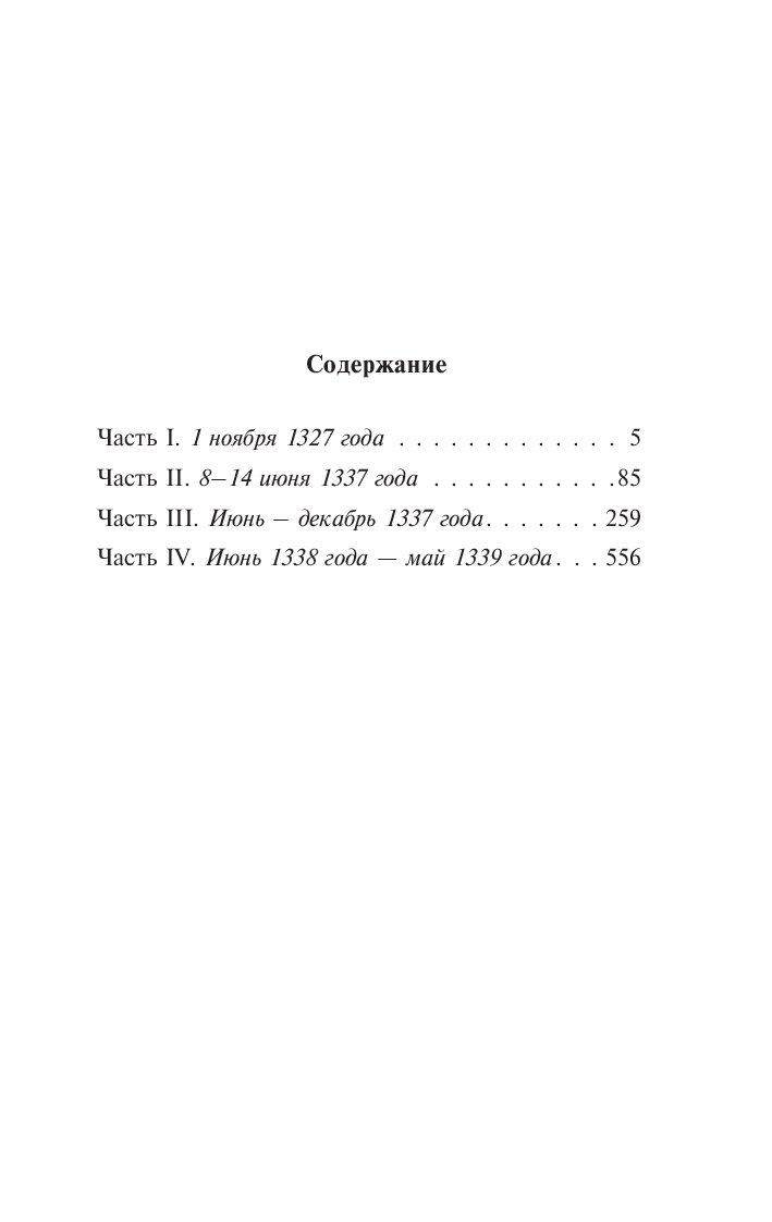Время начала Столетней войны, эпидемии чумы, блеска и роскоши двора Эдуарда III и превращения небольшой страны в самую могущественную державу Европы. Эпоха – глазами четырех персонажей...